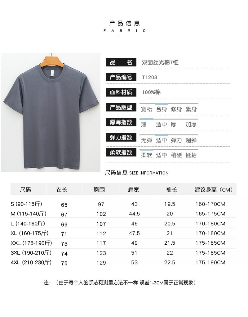 80s双面丝光棉t恤轻薄科技夏季白色半袖高级感青年纯棉短袖t恤男 RSFZ-T1208