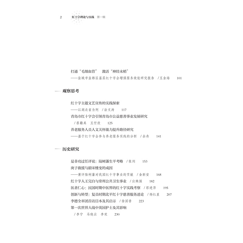 本文辑既有理论研究也有工作探讨,既有历史研究也有现实观察,既有学术评论也有实践调研,既有专家约稿也有百家争鸣。本文辑有志于为研究红十字运动的海内外学者、各级红十字组织、红十字志愿者提供一个相互沟通、交流的平台,推动浙江、中国乃至国际红十字运动研究的不断深入,为弘扬人道主义、助力共同富裕美好社会建设尽绵薄之力。