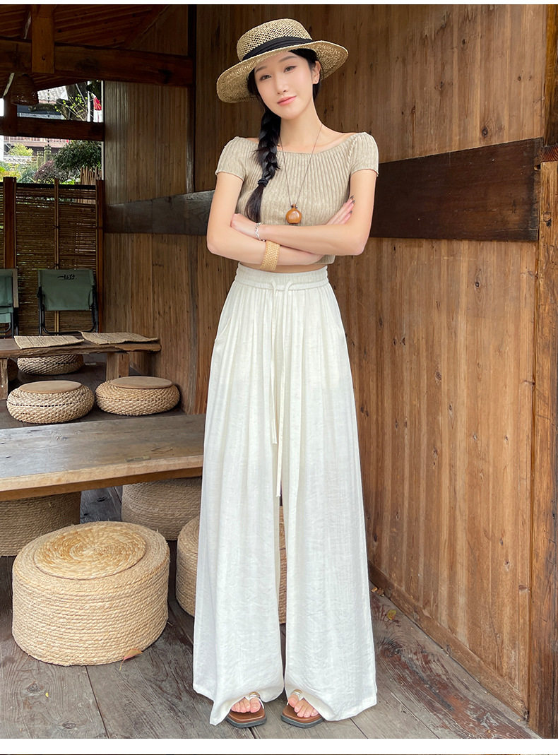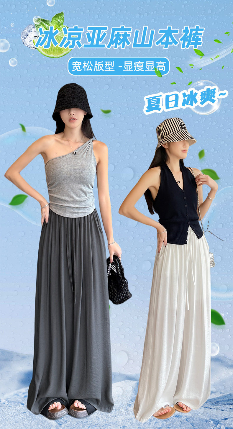 莱赛尔天丝亚麻裤女夏季薄款宽松慵懒山本裤小个子棉麻弯刀阔腿裤 NDK-J2586