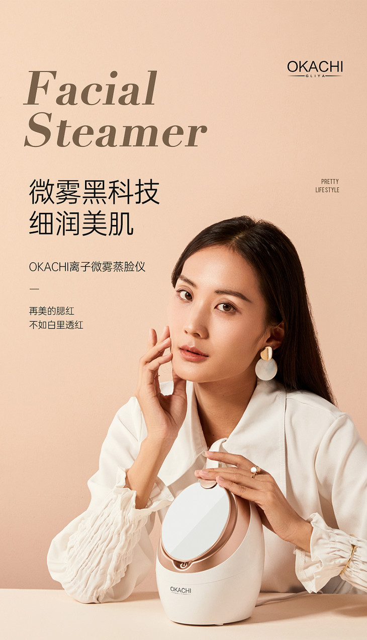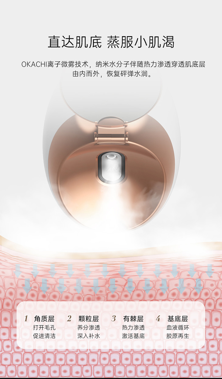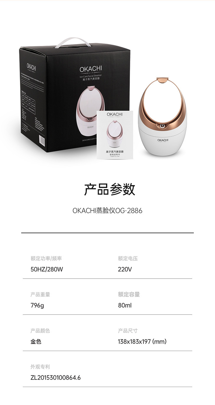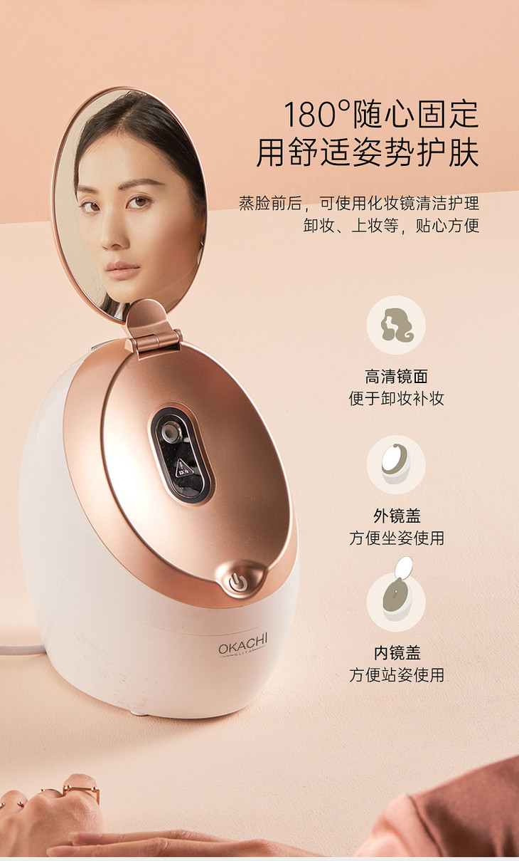 【护肤好搭档,蒸一蒸效果加倍】OKACHI欧卡姿纳米离子热喷蒸脸器,面膜、水乳、清洁、去黑头搭配使用,促进面部血液循环加速面部代谢
