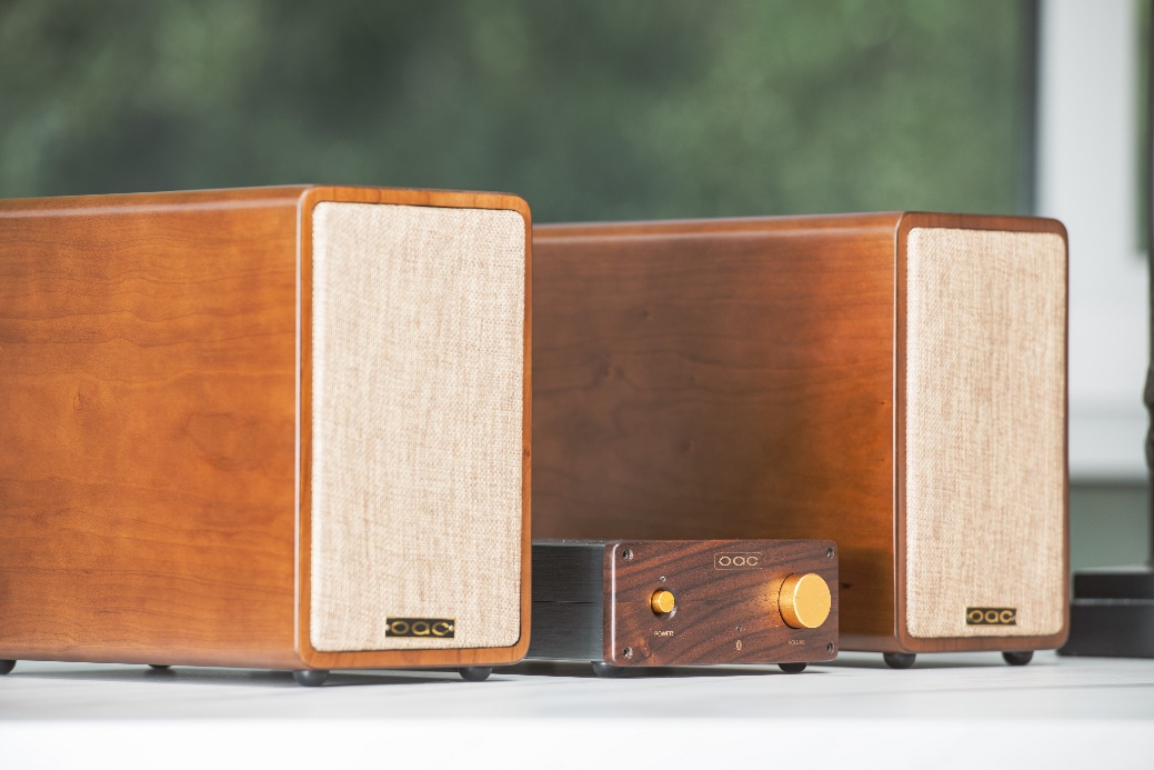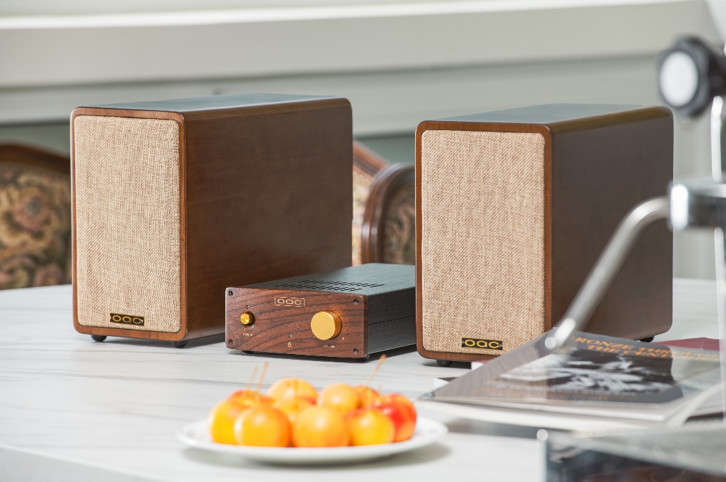 oac欧氏音响最新设计推出BS-5木色桌面型蓝牙音响系统。