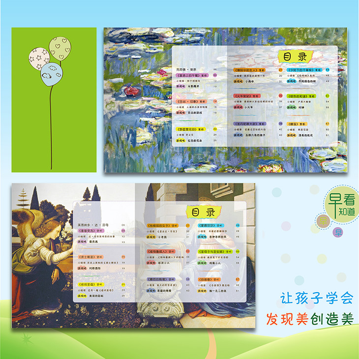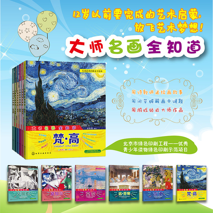 | ★“大师名画全知道”系列6本入选“北京市绿色印刷工程——优秀青少年读物绿色印刷示范项目库”,采用绿色纸张、油墨进行印刷,保护孩子健康。 1.亲子阅读,解读大师的艺术世界。 2.趣味游戏,感受大师的经典名作。 3.提升能力,让孩子学会发现美、创造美。 《大师名画全知道》系列图书6本,包括: 大师名画全知道 梵·高 大师名画全知道 高更 大师名画全知道 莫奈 大师名画全知道 达·芬奇 大师名画全知道 毕加索 大师名画全知道 夏加尔 ●不知道大师的生平和故事?我来告诉你!大师的生平事迹、创作背景、创作特色、主要成就……书中都有答案。 ●不知道怎么看名画?我来告诉你!书中有优美的原创诗歌,有各种天真可爱的问题,让孩子对名画形成完整而鲜明的第一印象。 ●不知道名画“背后的故事”?我来告诉你!“小链接”是由大师或名画引申而出的各种小知识、小故事、小趣闻,让孩子们进一步加深对大师及名画的印象。 ●不知道怎样像大师一样挥洒创造力和想象力?我来告诉你!让孩子有兴趣行动起来,用拼贴、泥塑、涂色、剪纸、手工等方式表达孩子对名画的理解,在愉快的游戏中挥洒无尽的创造力! |