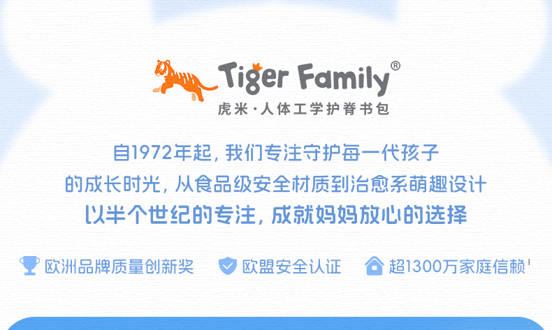 - Tiger Family虎米,创立于1972年,在欧洲累计销量超过3000万个,深获欧洲家长与孩子们的喜爱。