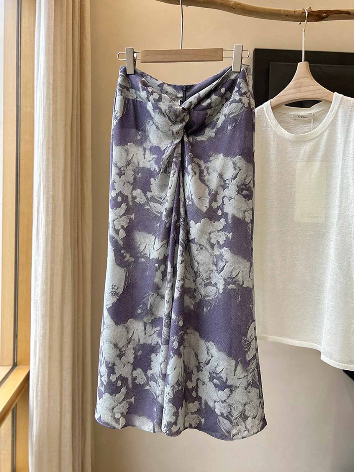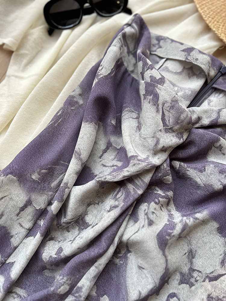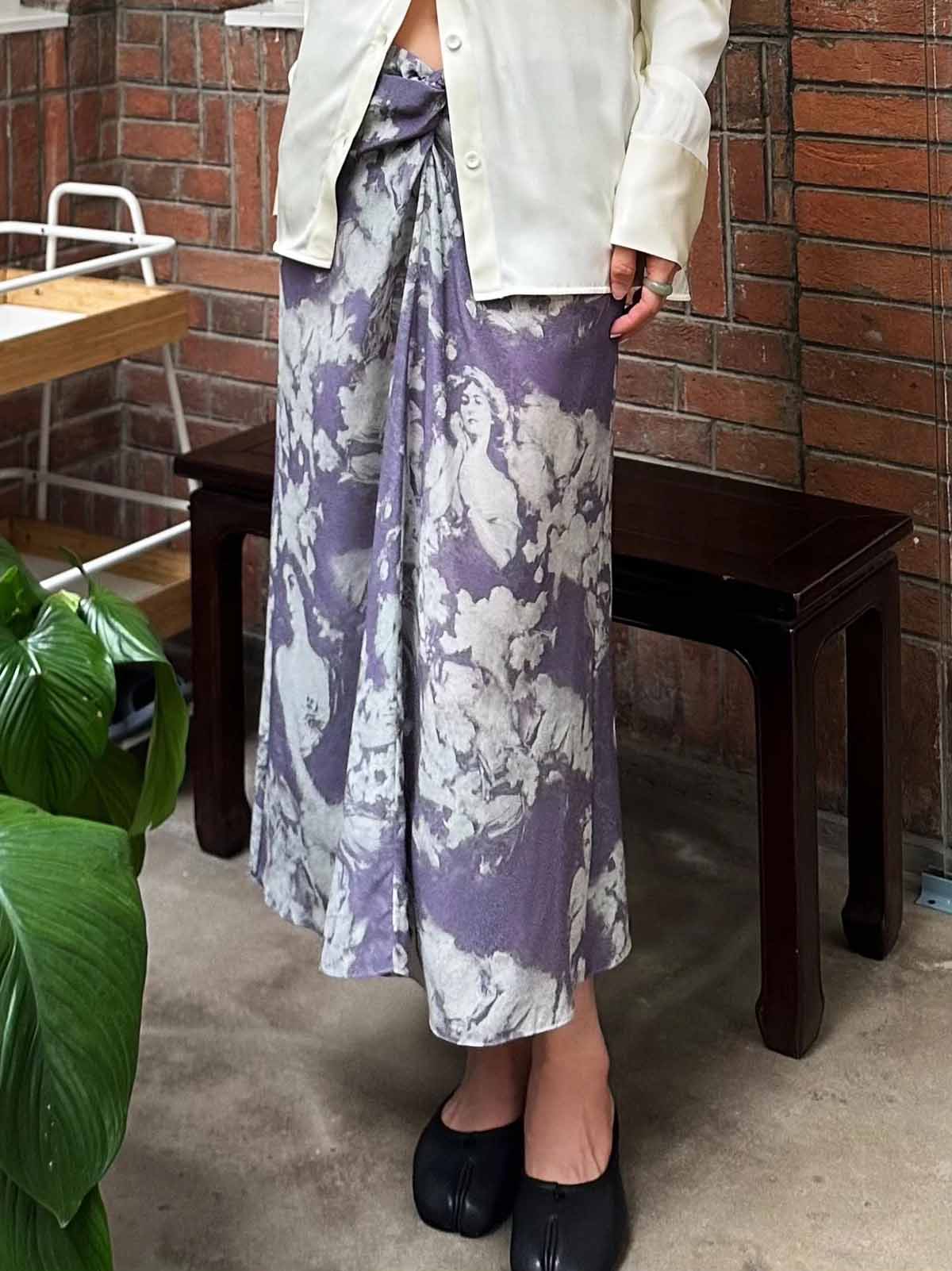 顺丰包邮洛诗琳45409法式温柔设计感高腰纽结真丝半身裙0119