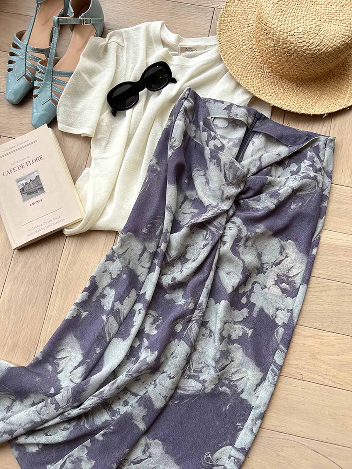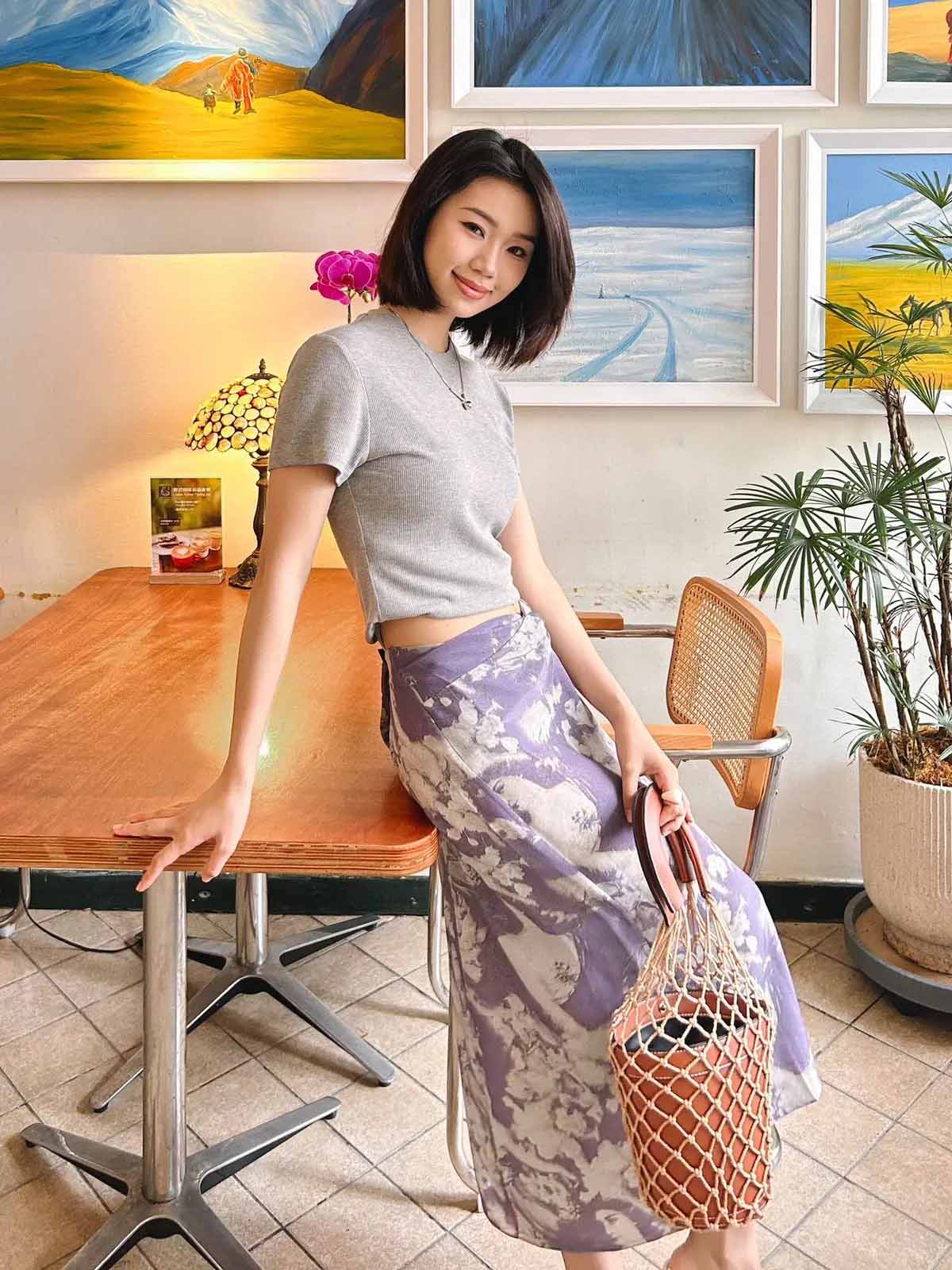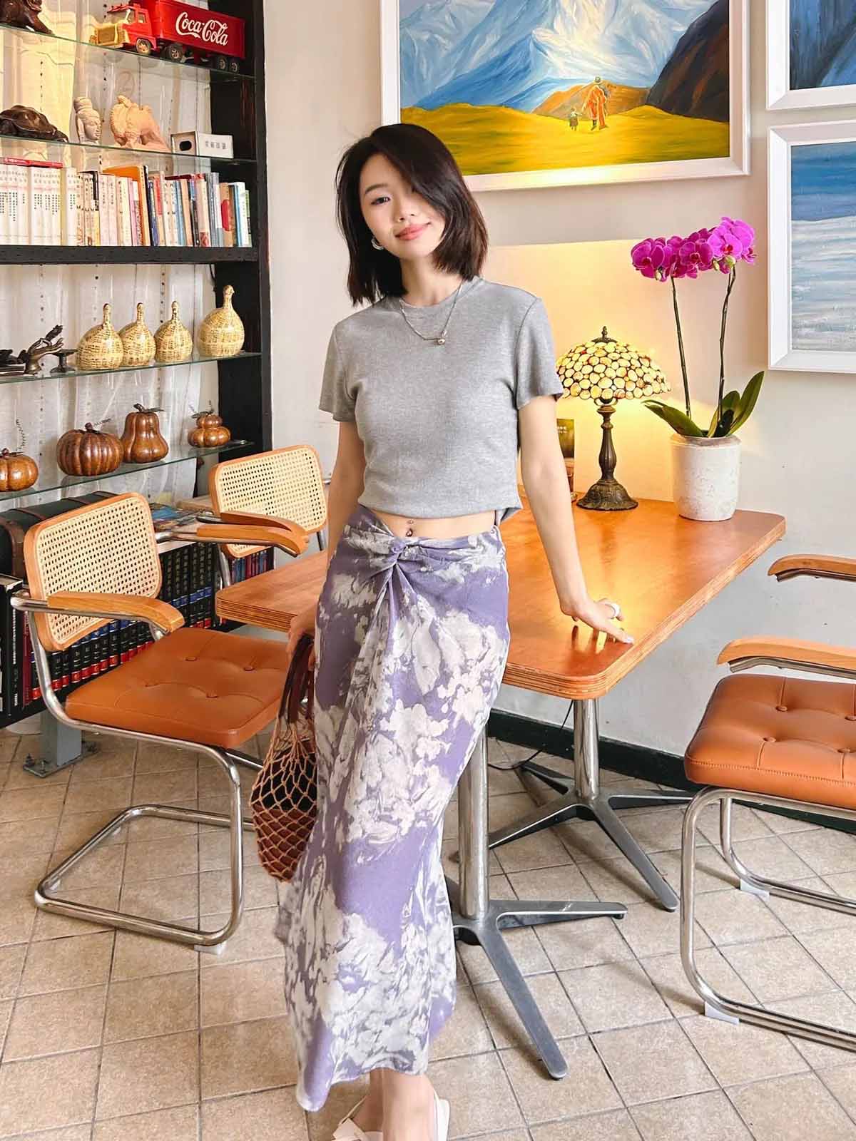 顺丰包邮洛诗琳45409法式温柔设计感高腰纽结真丝半身裙0119