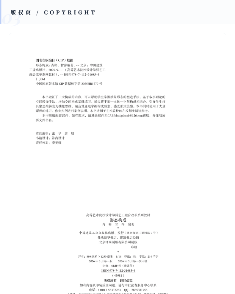 书名:形态构成 高等艺术院校设计学科艺工融合改革系列教材