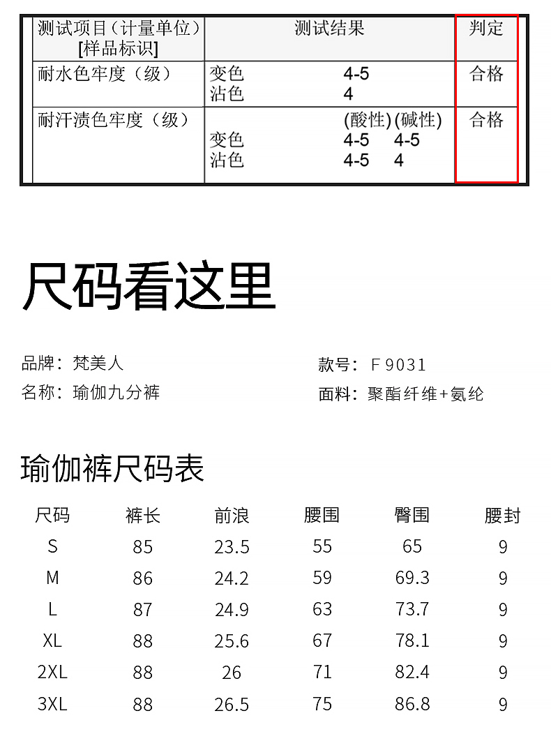 梵美人 F08101L 瑜伽裤九分裤 裸感塑形面料 金标