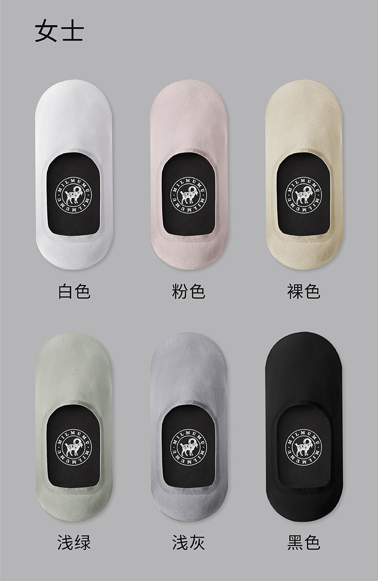 轻薄凉感 舒适透气 | MILMUMU羊奶丝呼吸船袜隐形袜 夏天薄款男女同款短袜子 多色 5双装独立装/盒