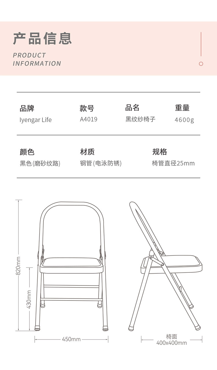 A4019 艾扬格life黑纹纱椅子 前后单杠瑜伽椅子