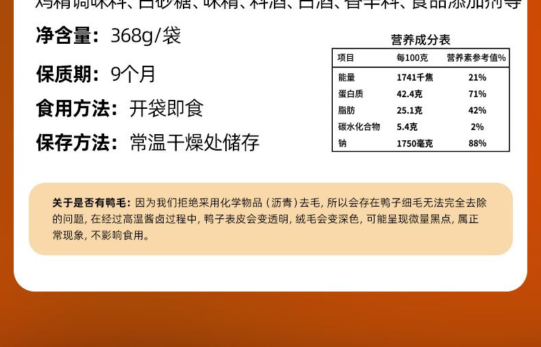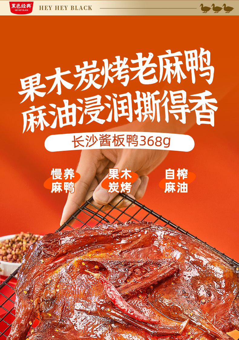 【送礼推荐】黑色经典酱板鸭368g/袋 精选老麻鸭 自榨纯麻油炭烤