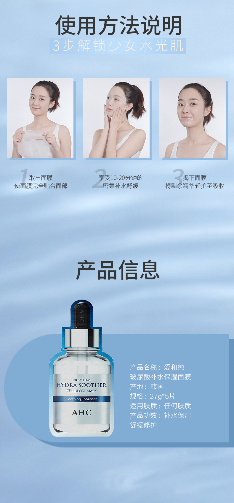 【精选好物】AHC 臻致B5玻尿酸小安瓶补水面膜 27ml*5(5片/盒)