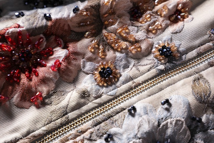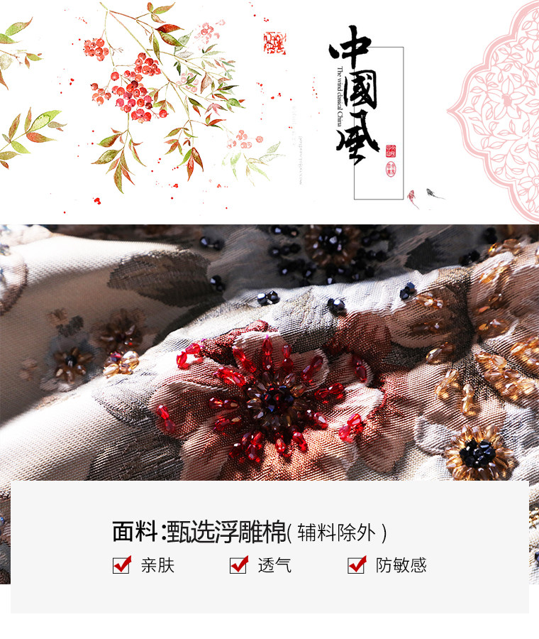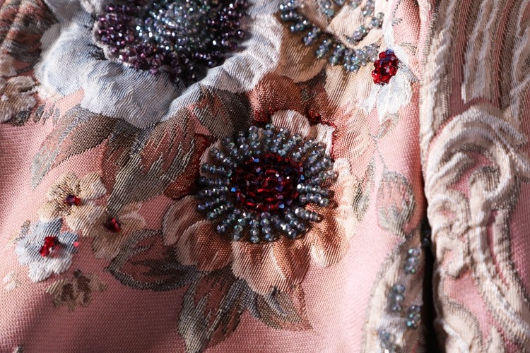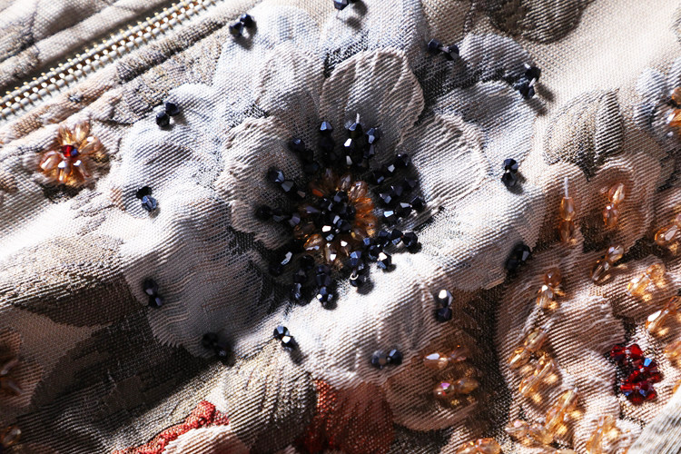 重工钉珠+浮雕提花棉面料+欧式宫廷花纹的颜值