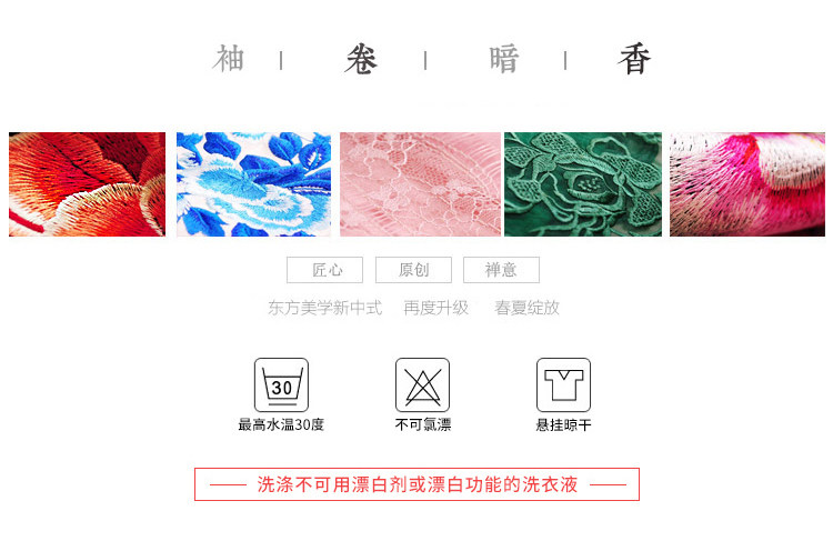 600+颗手工排钻:这个闪钻不是随意排版的,是有设计感的,主要围着花朵锦缎部分