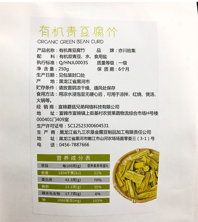 品名:有机青豆腐竹
