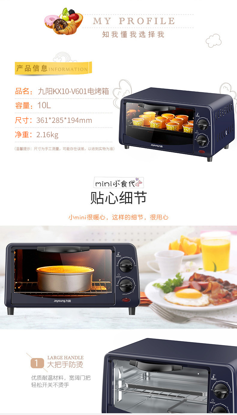 【好吉利】九阳10L电烤箱家用多功能烘焙定时控温 KX10-V601