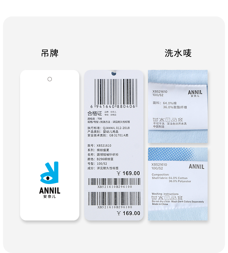 【实体店同款】男童圆领短袖针织衫夏季新款安奈儿童装XB521610