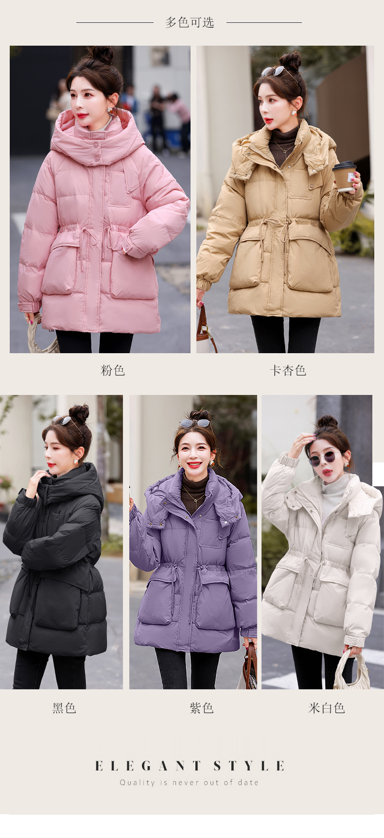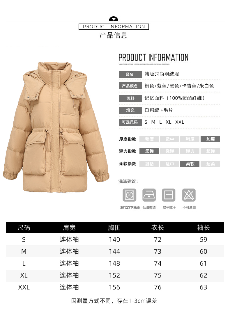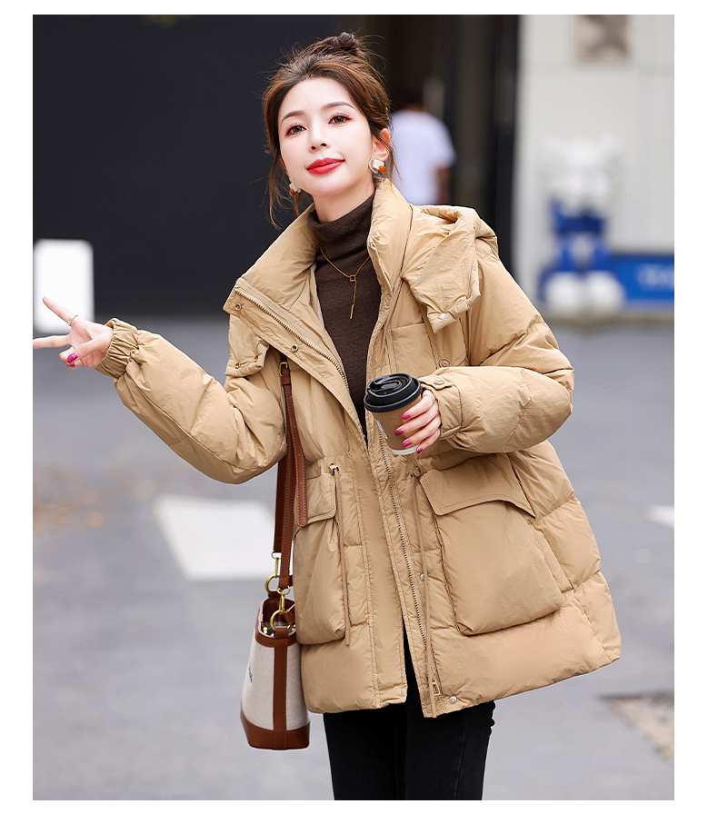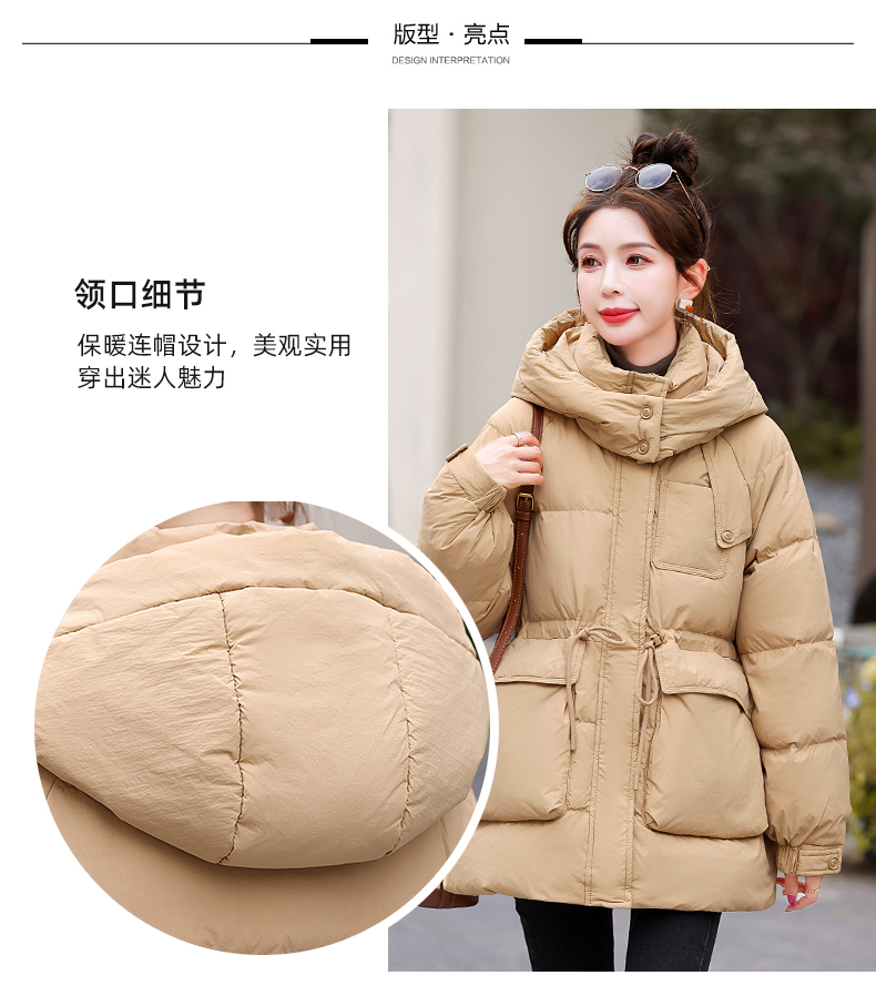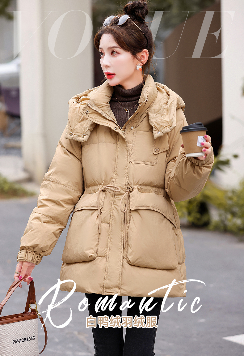 白鸭绒羽绒服连帽,面包服时尚收腰保暖外套HR-KJFD185