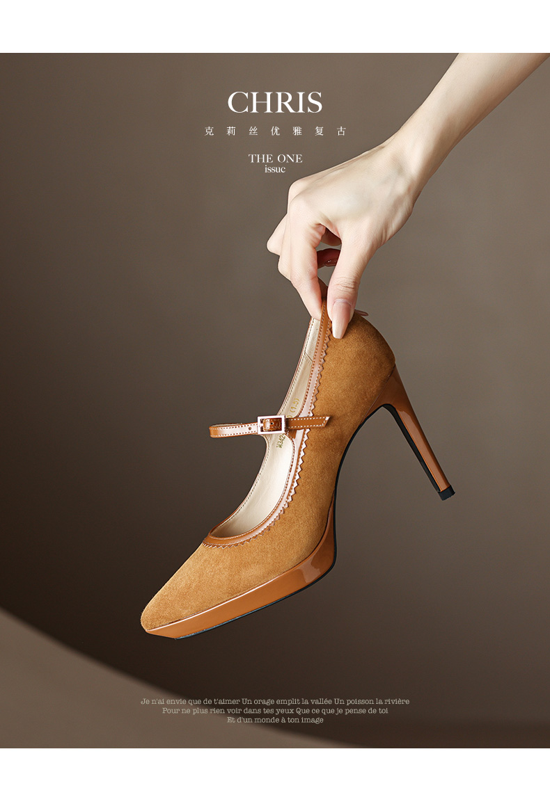 性感百搭,细高跟里外全皮浅口高跟鞋HY-M642-1