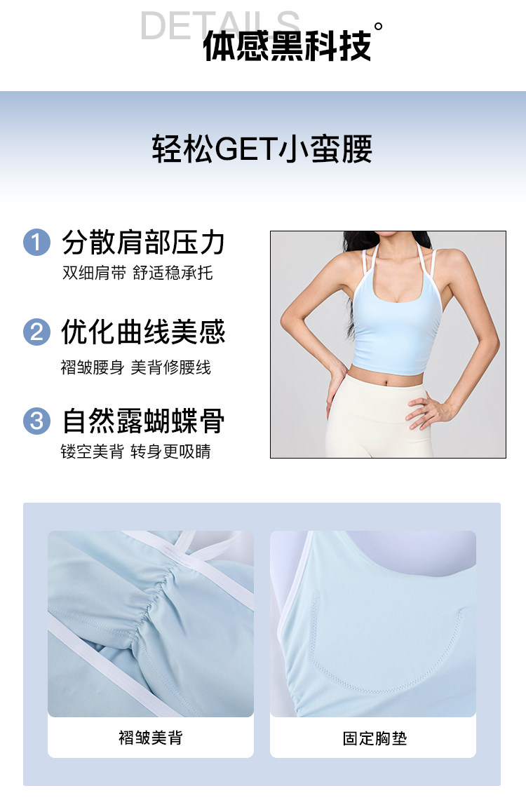 【限时秒】YOGACODE【火树银花系列】挂脖瑜伽内衣女夏季短款镂空美背健身内衣DWC116015