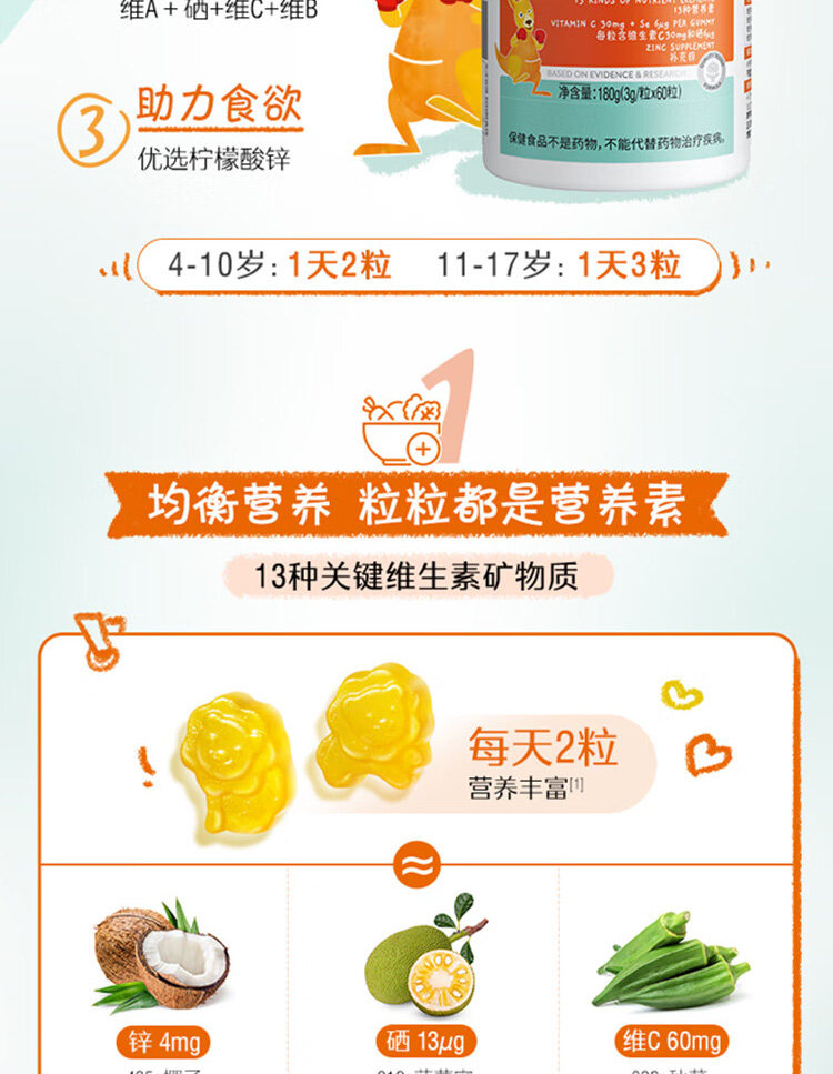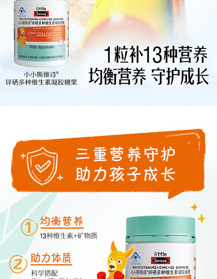 60粒Swisse小小斯维诗®锌硒多种维生素凝胶糖果