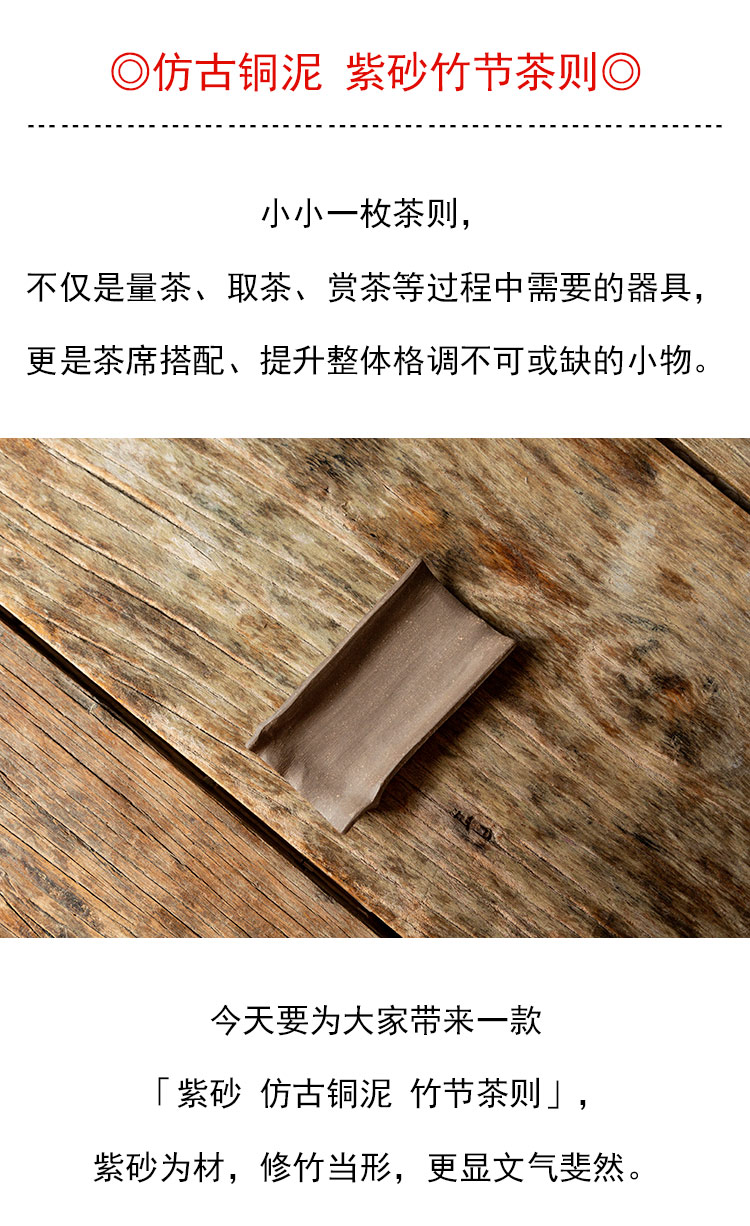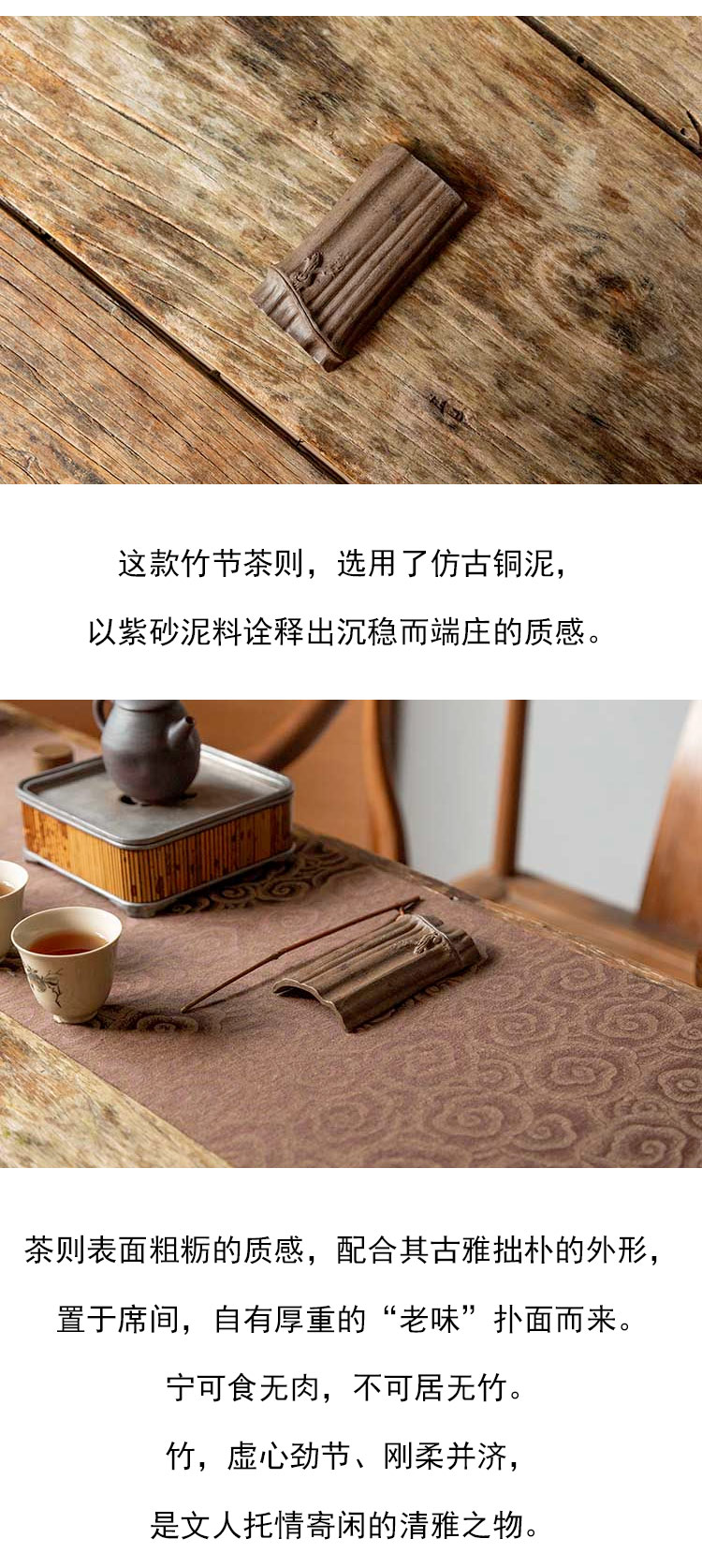 茶香记 仿古铜泥 紫砂竹节茶则 仿形逼真 精细雕刻 功夫茶具