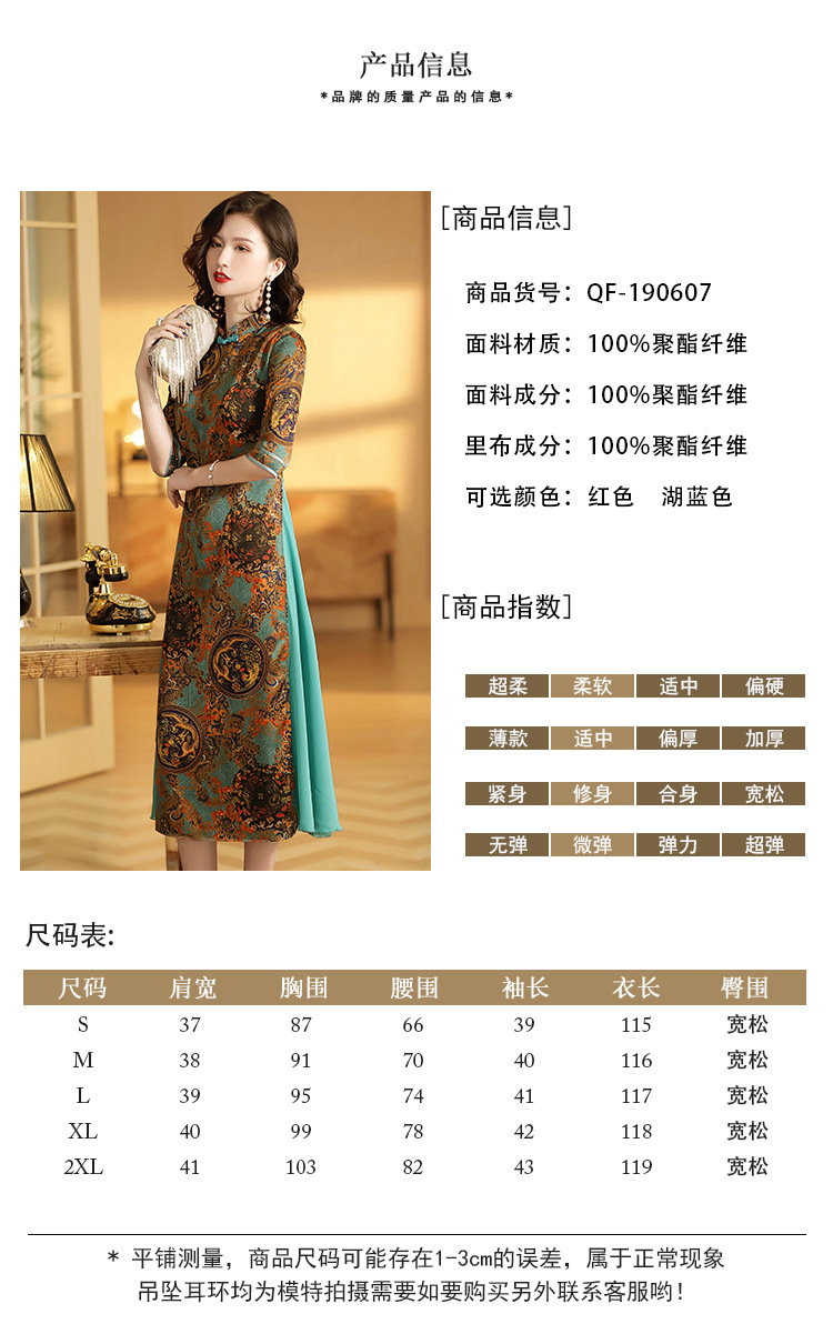 上海旗袍厂AYK-QF-190607时尚印花拼接中袖连衣裙复古民国风修身时装改良长旗袍裙
