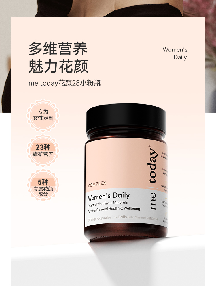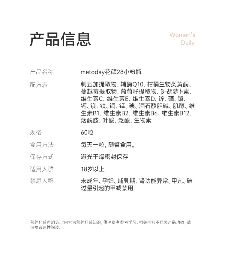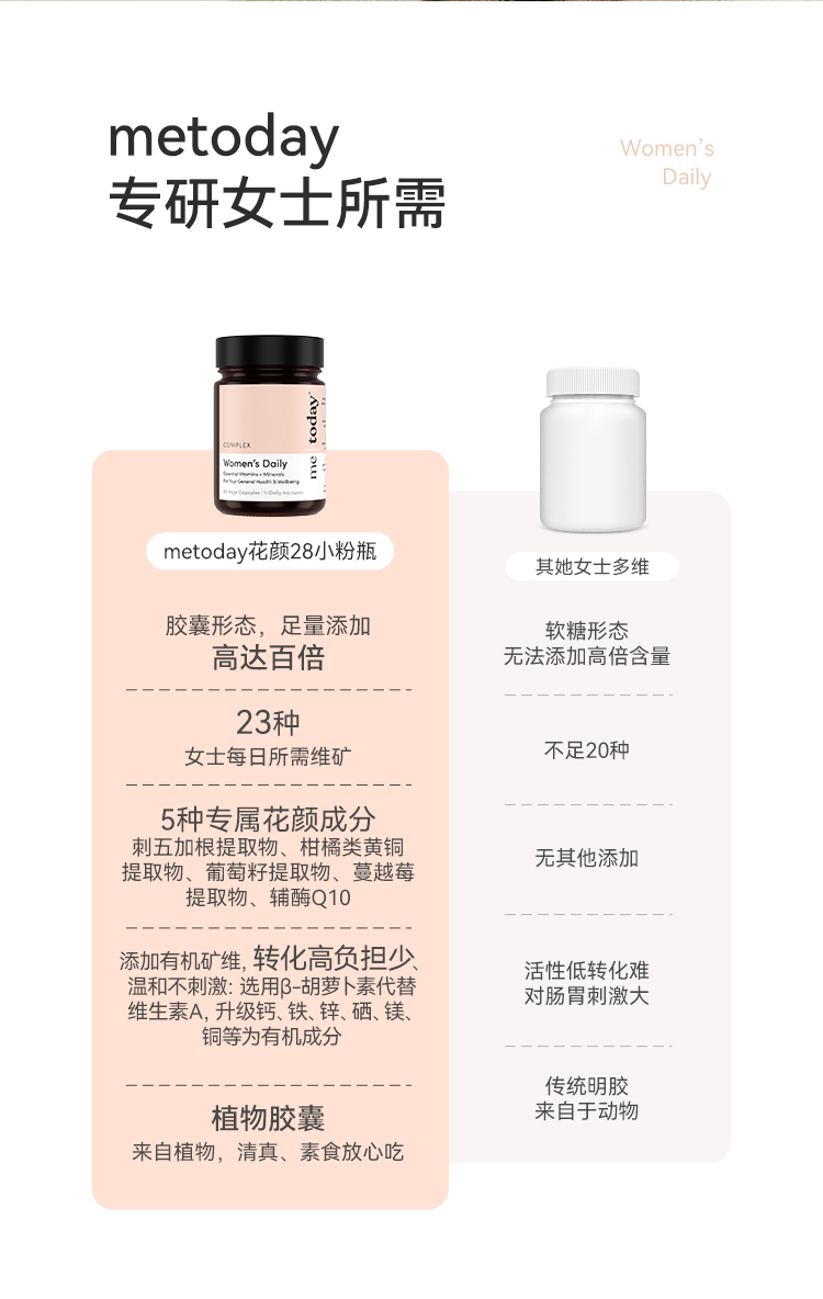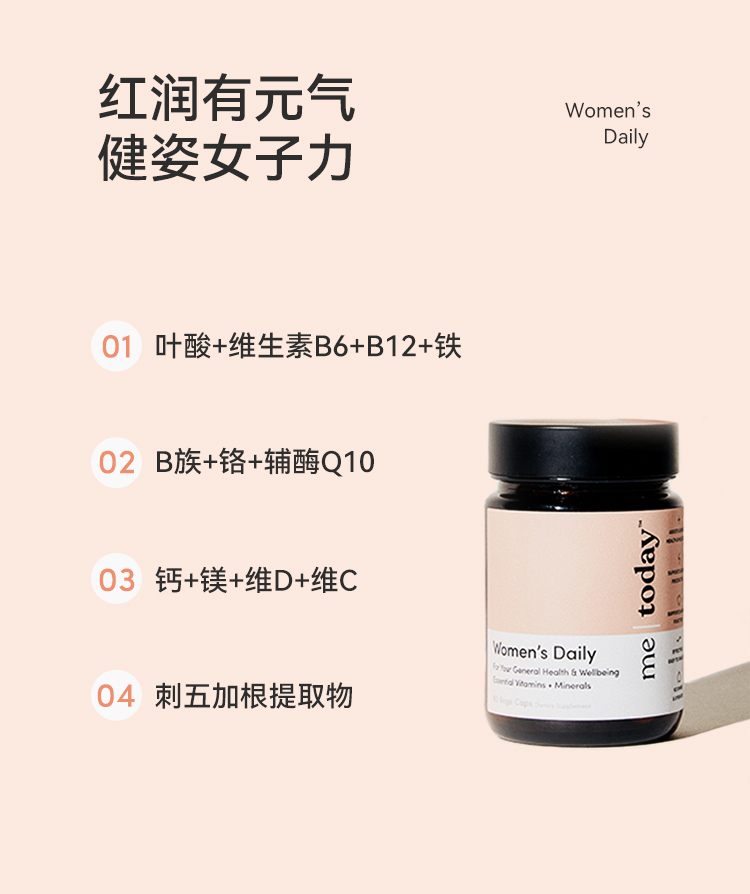 【保税仓】metoday女性复合维生素胶囊 60粒/瓶 高能复配 营养更全面