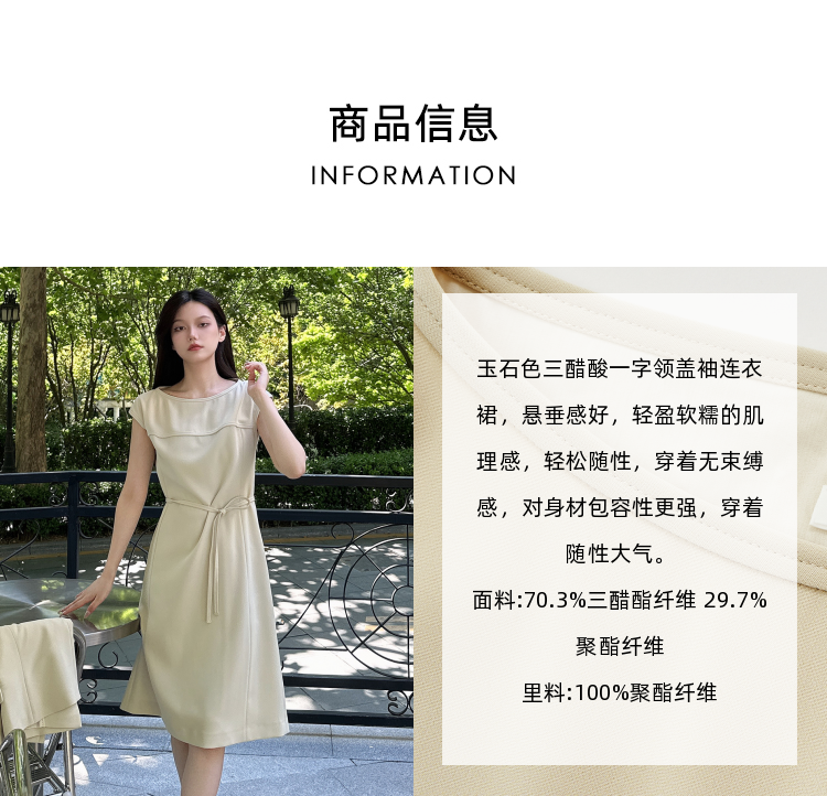 【三醋酸】Laurel劳芮 玉石色一字领盖袖连衣裙LWL343Y00300