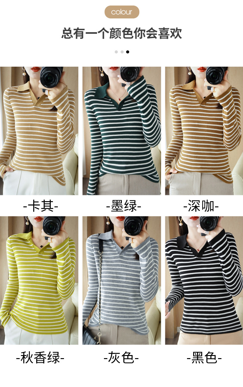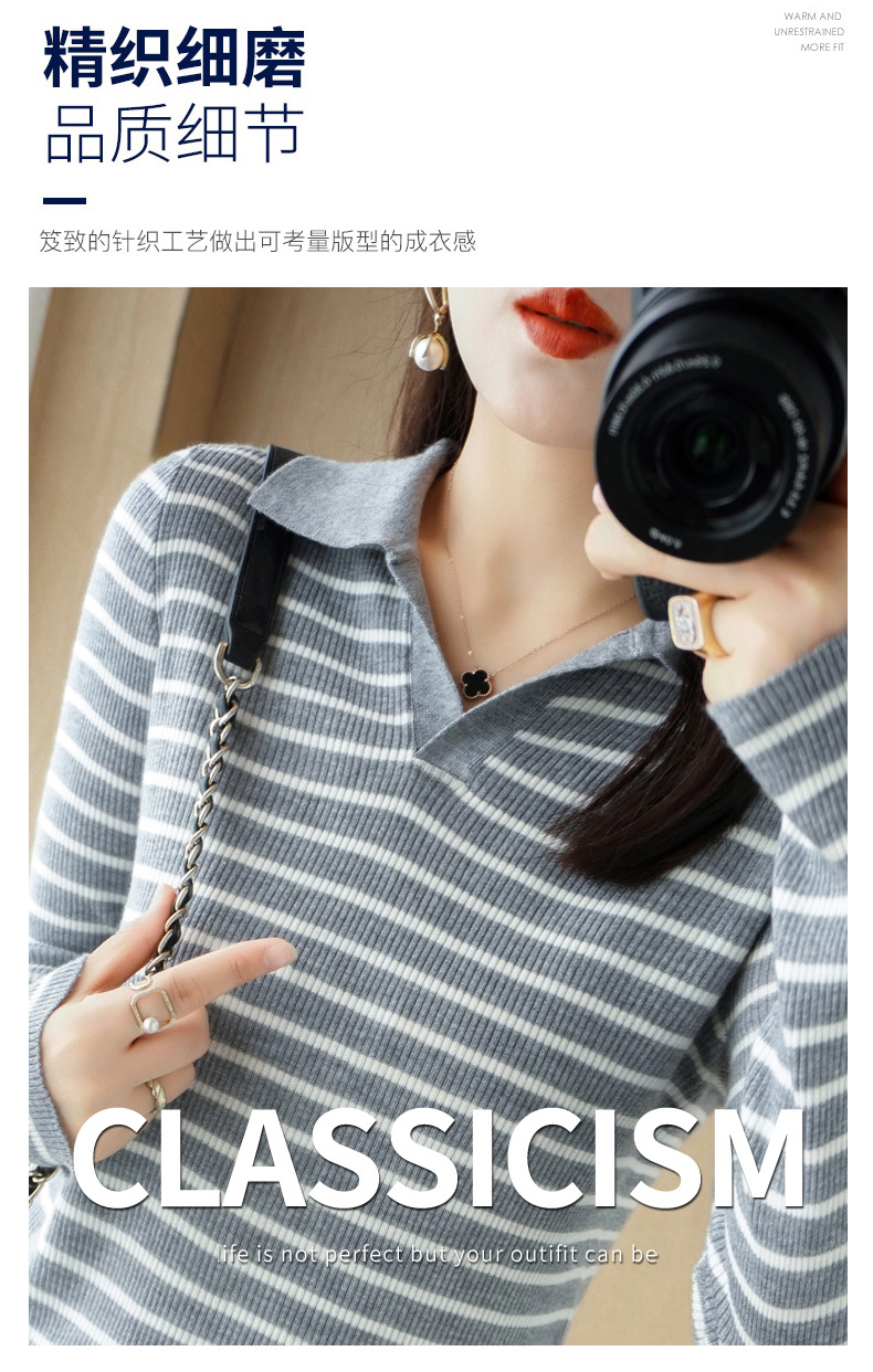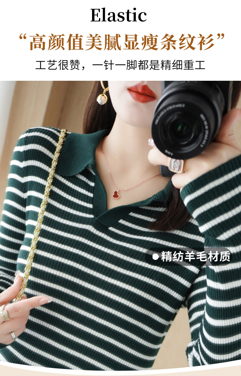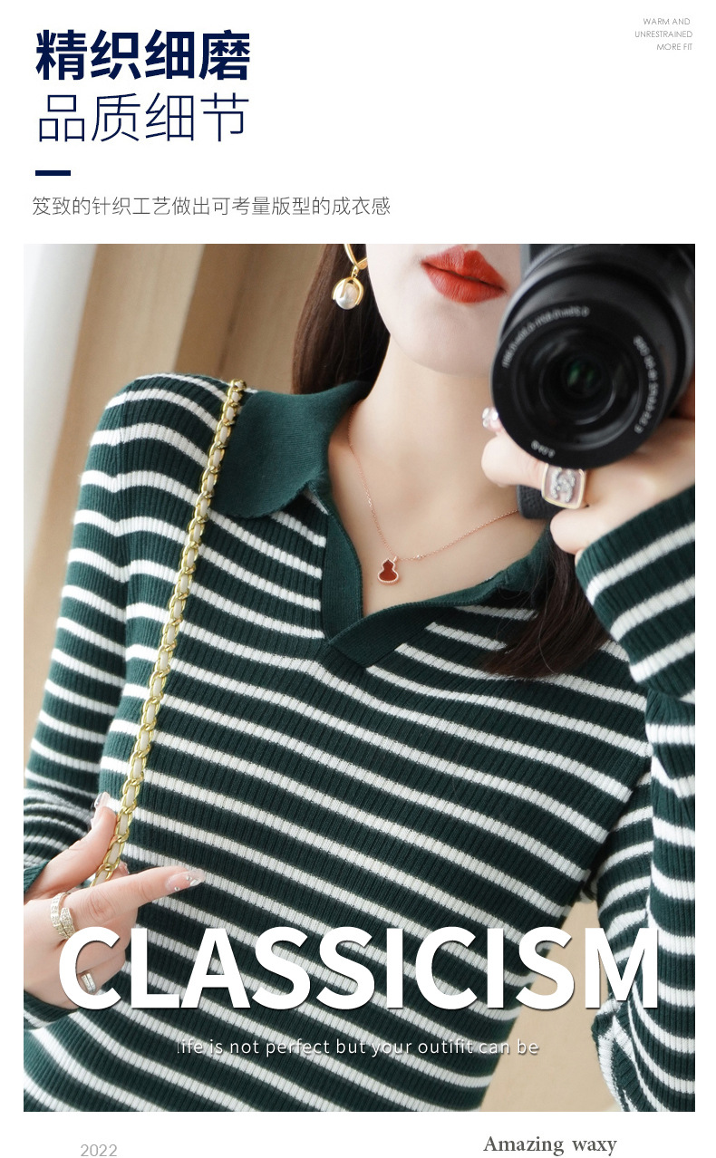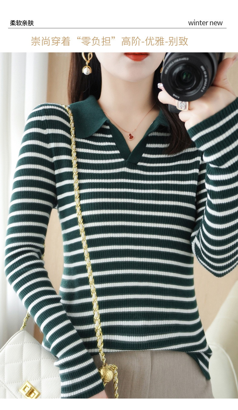QHJY-JYPL2273 polo领针织衫衬衣女修身显瘦毛衣套头短款长袖外搭打底衫精纺羊毛