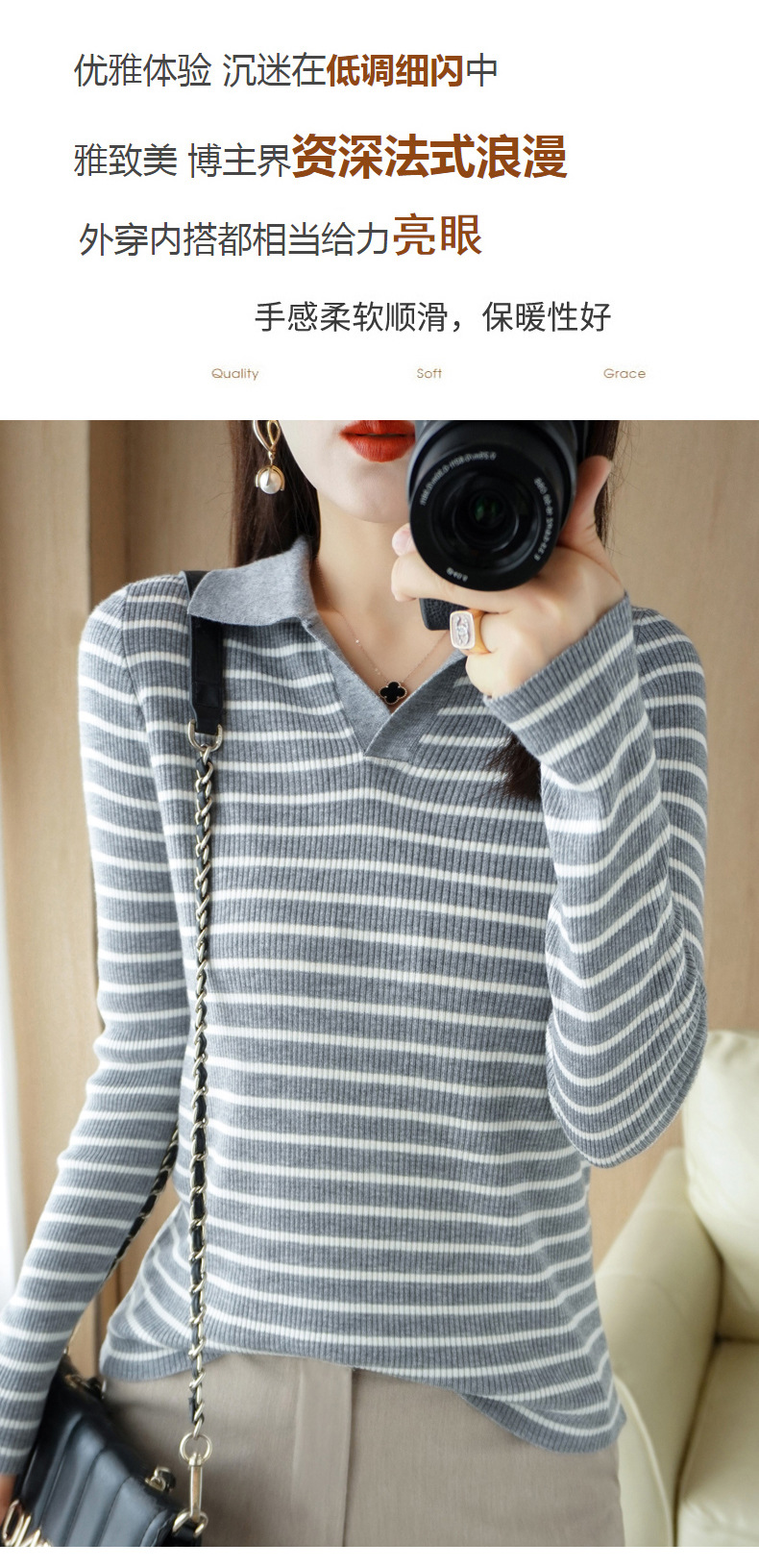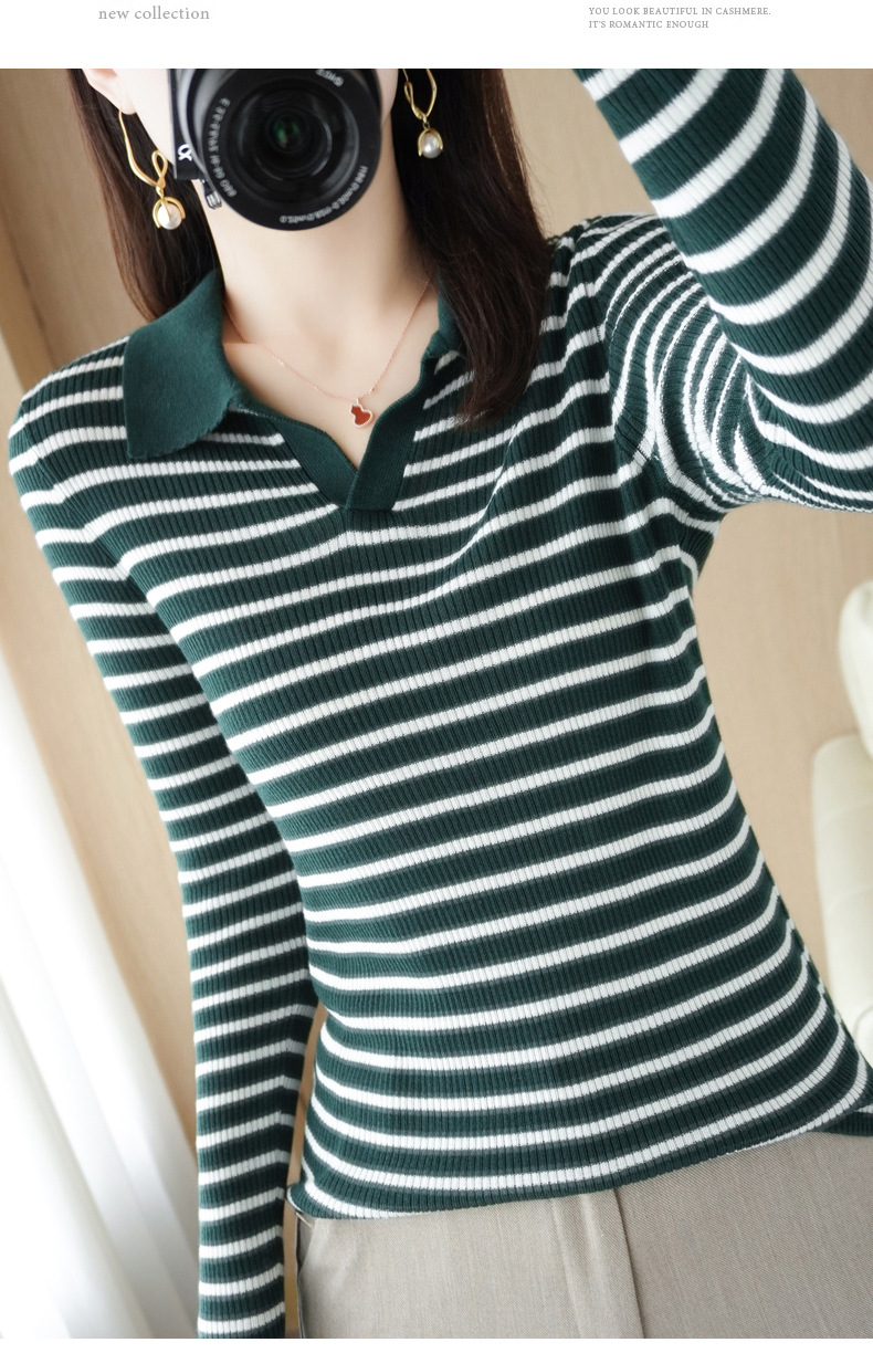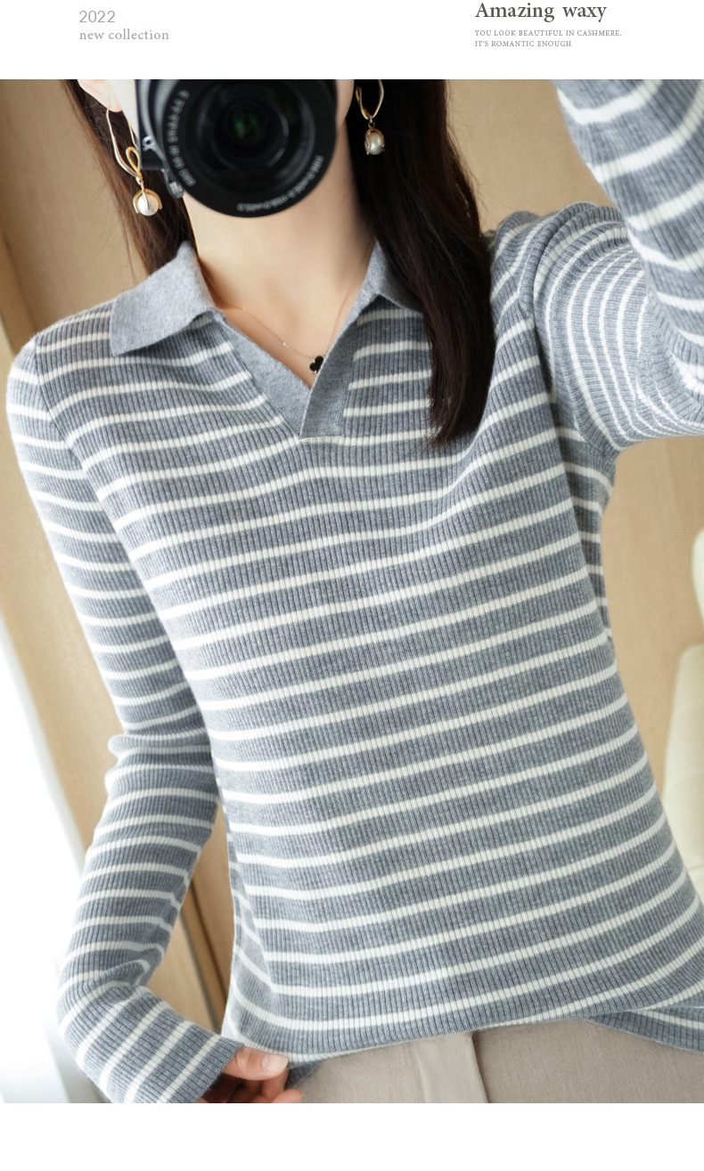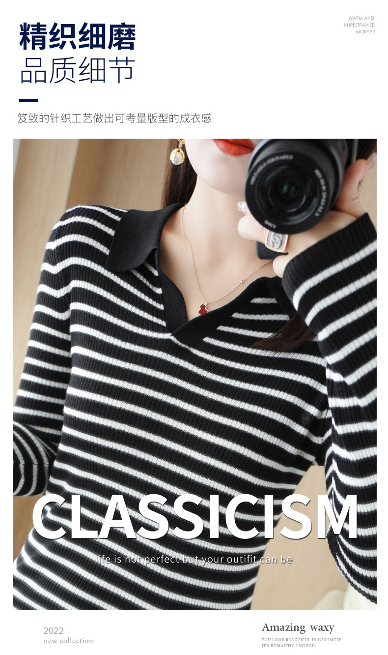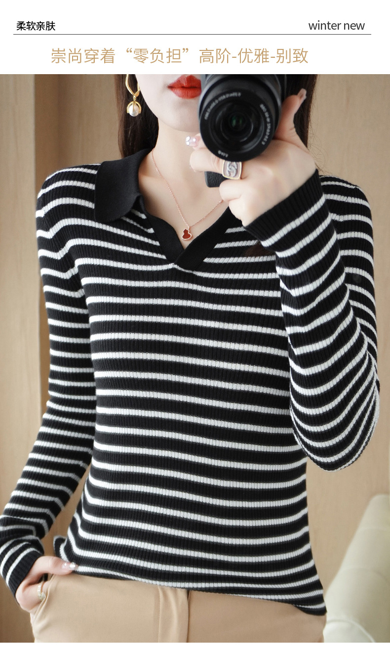QHJY-JYPL2273 polo领针织衫衬衣女修身显瘦毛衣套头短款长袖外搭打底衫精纺羊毛
