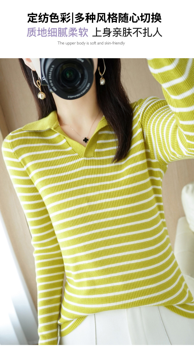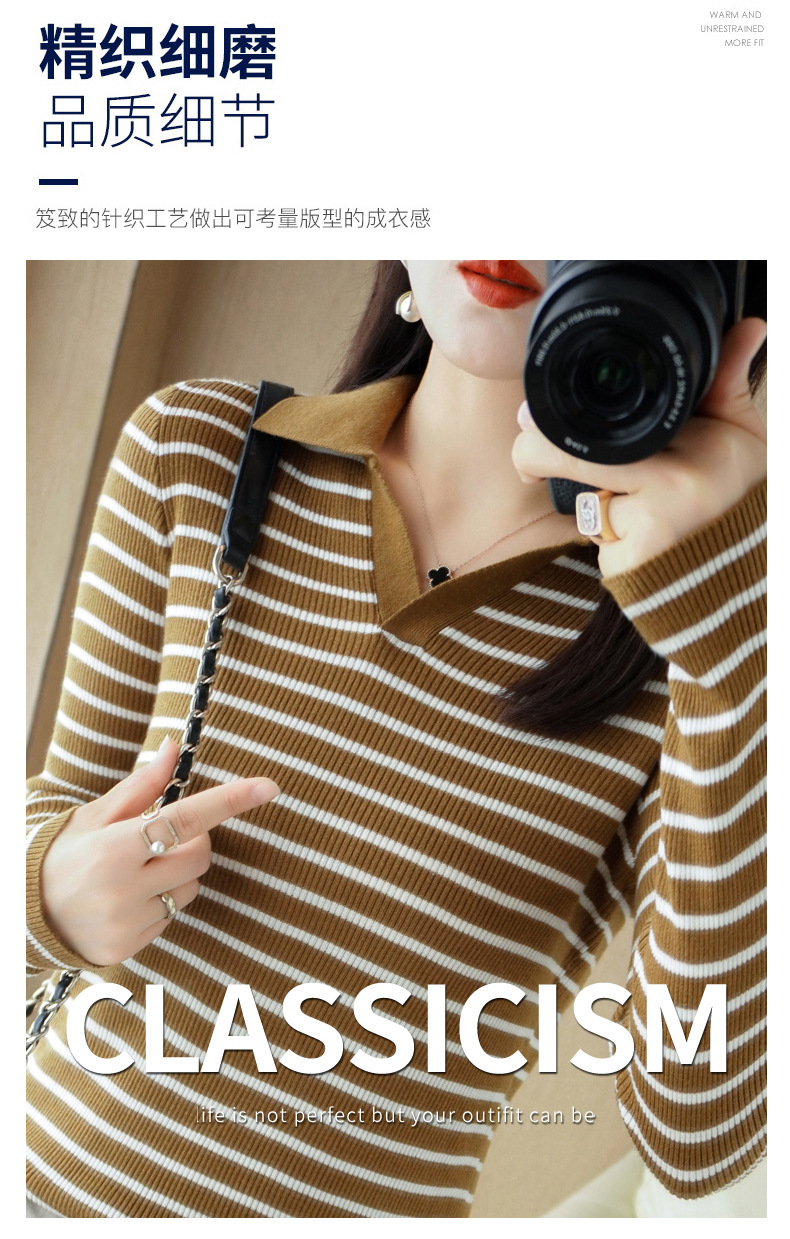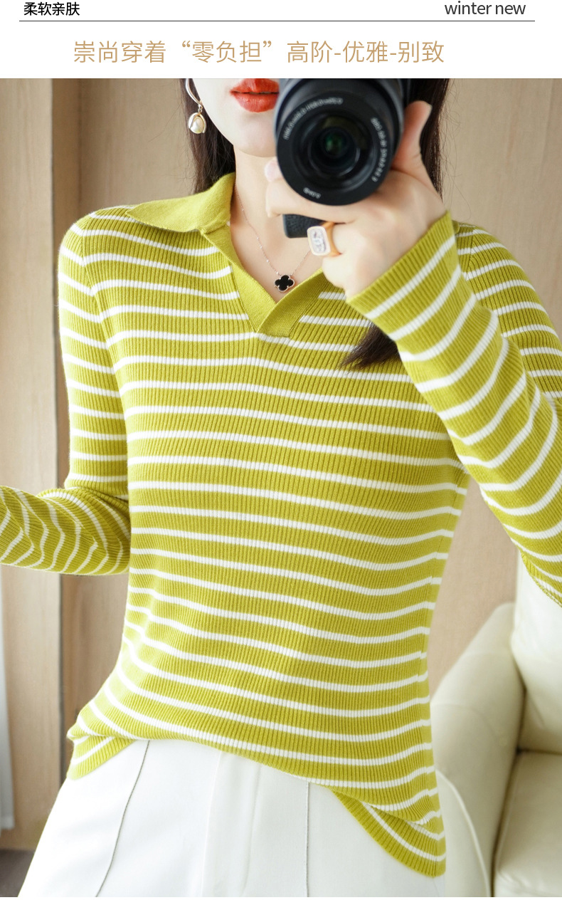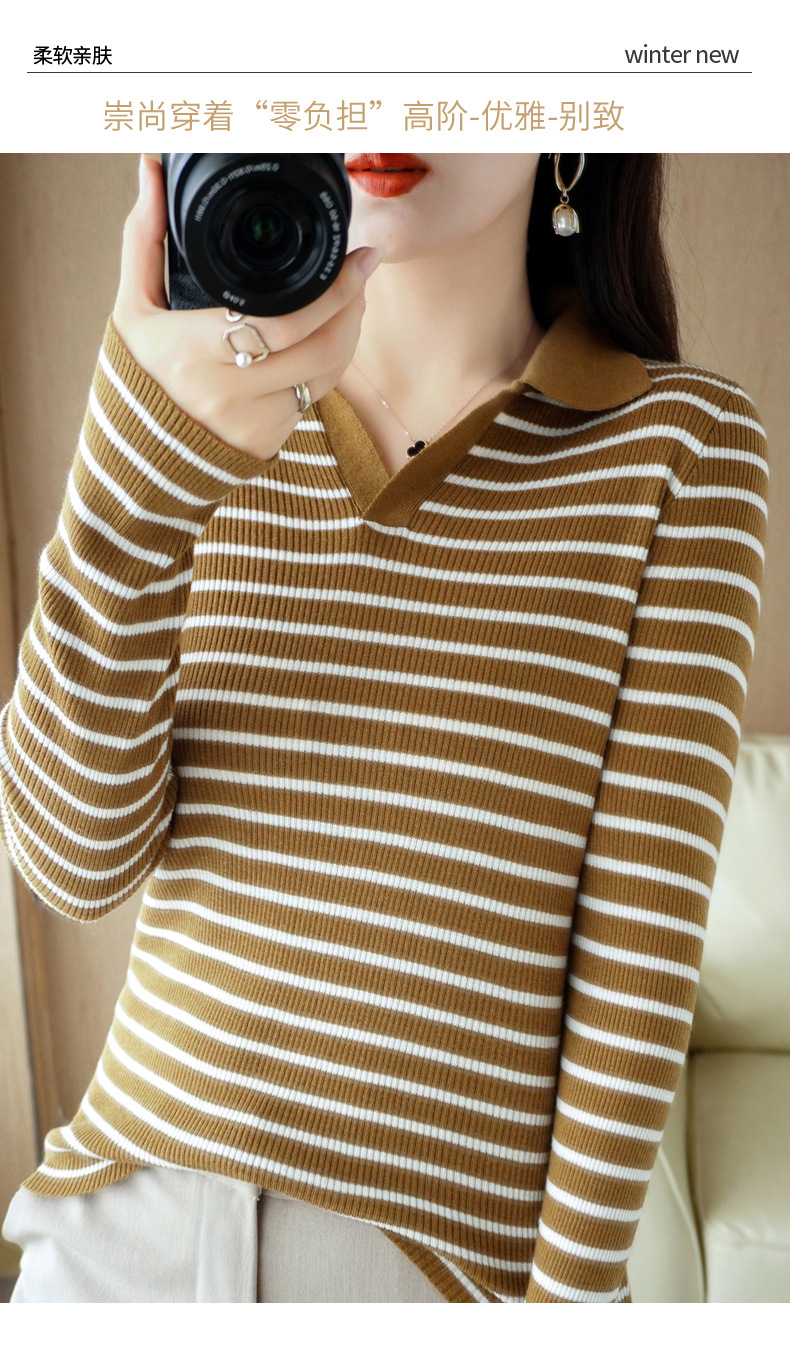 QHJY-JYPL2273 polo领针织衫衬衣女修身显瘦毛衣套头短款长袖外搭打底衫精纺羊毛
