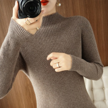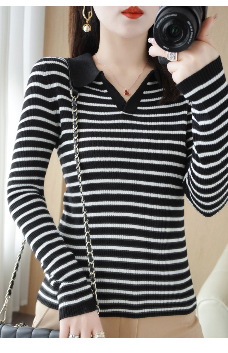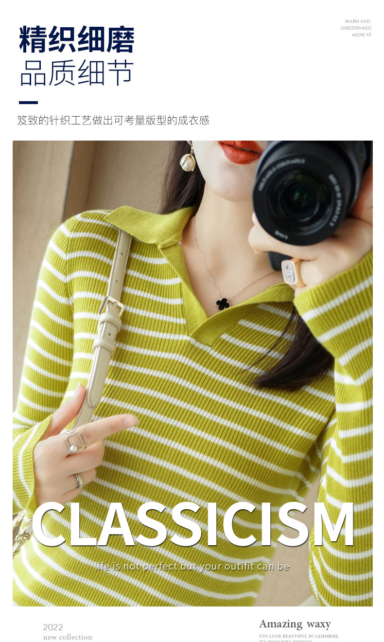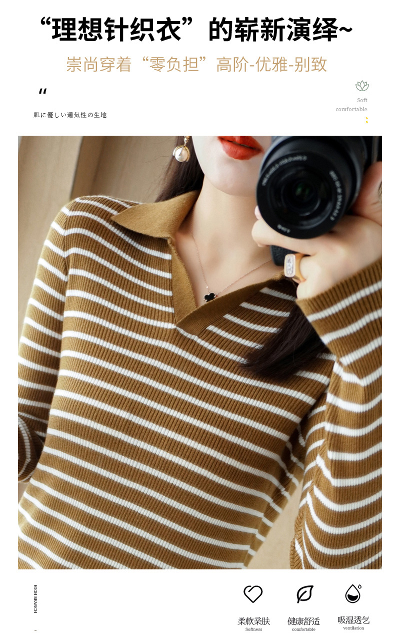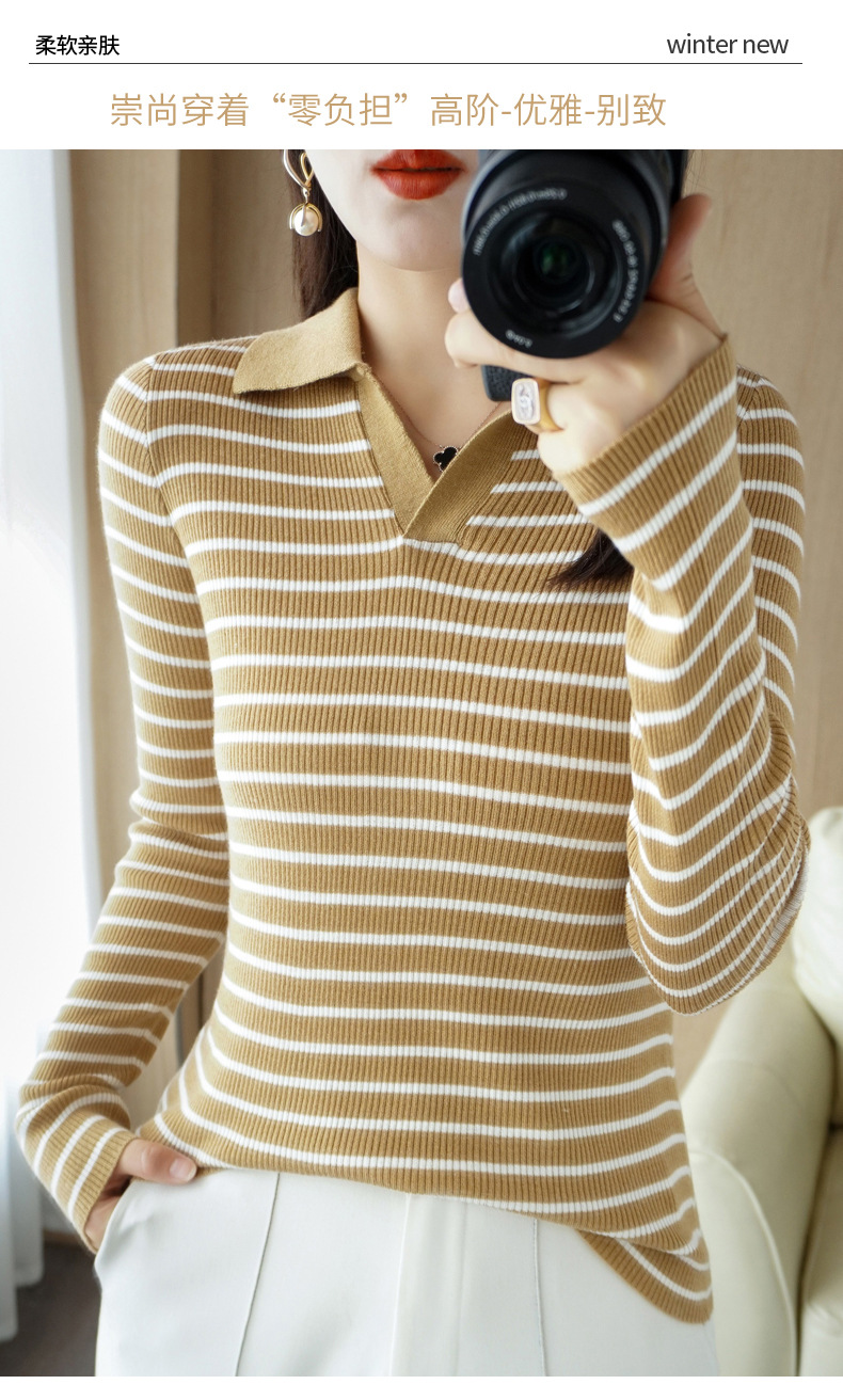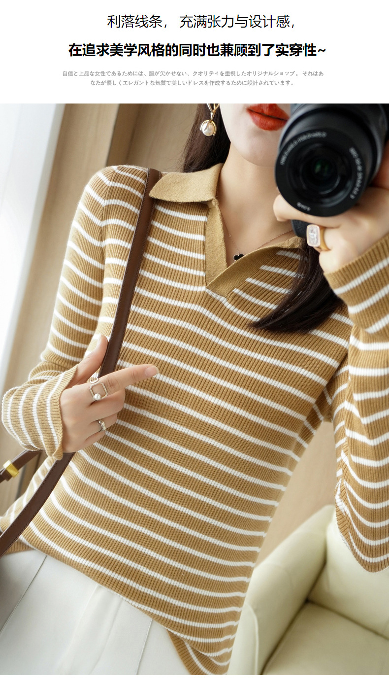 QHJY-JYPL2273 polo领针织衫衬衣女修身显瘦毛衣套头短款长袖外搭打底衫精纺羊毛