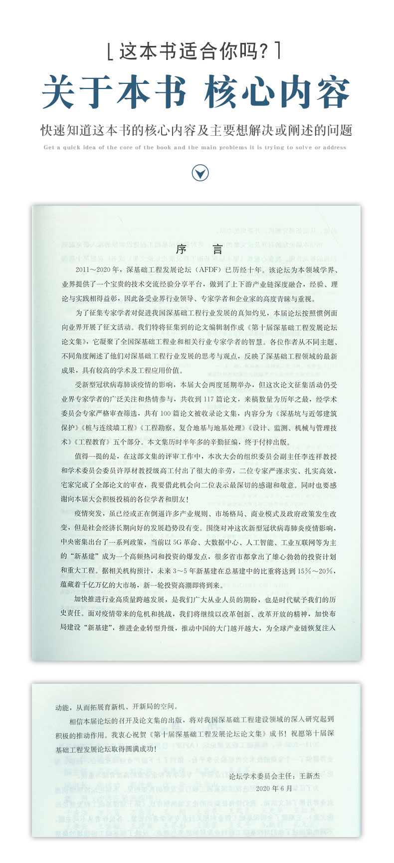 深基础工程发展论坛每年举办一次,已成为业内培养人才、促进学科进步、具有重要意义的行业论坛。本书共收录论文100篇,主要内容是深基础工程领域在理论研究、设计、施工、机械设备、试验检测等方面的发展和创新成果。这些论文大致反映了我国土木工程科技工作者近几年来在深基础工程上的研究成果与工程实践。具体包括深基坑与邻近建筑保护,地下连续墙工程,复合地基与地基处理,设计、监测、机械及管理技术等四大方面,这些论文提出的新观点、新思路和新方法,具有一定的学术价值和实用推广价值。