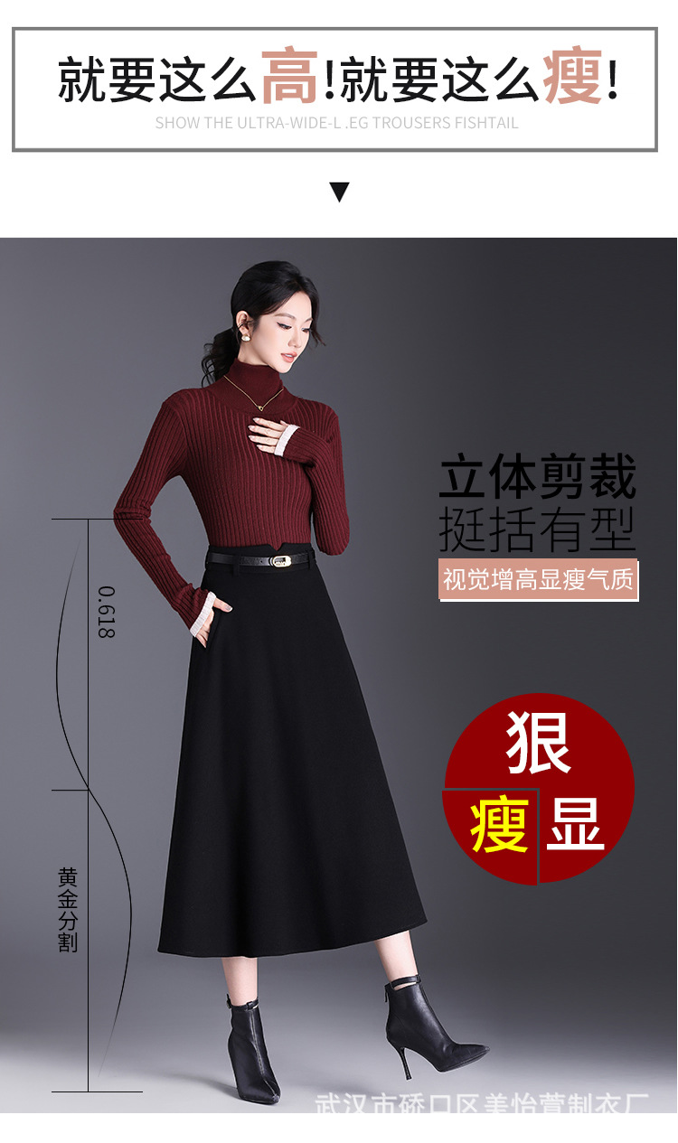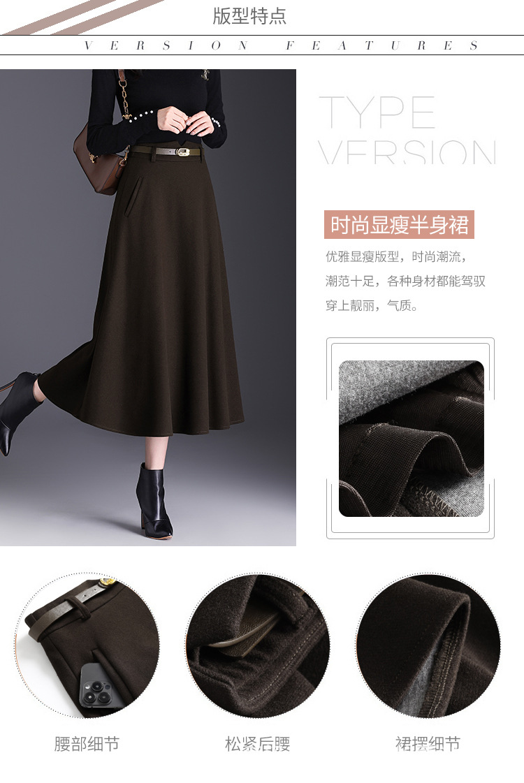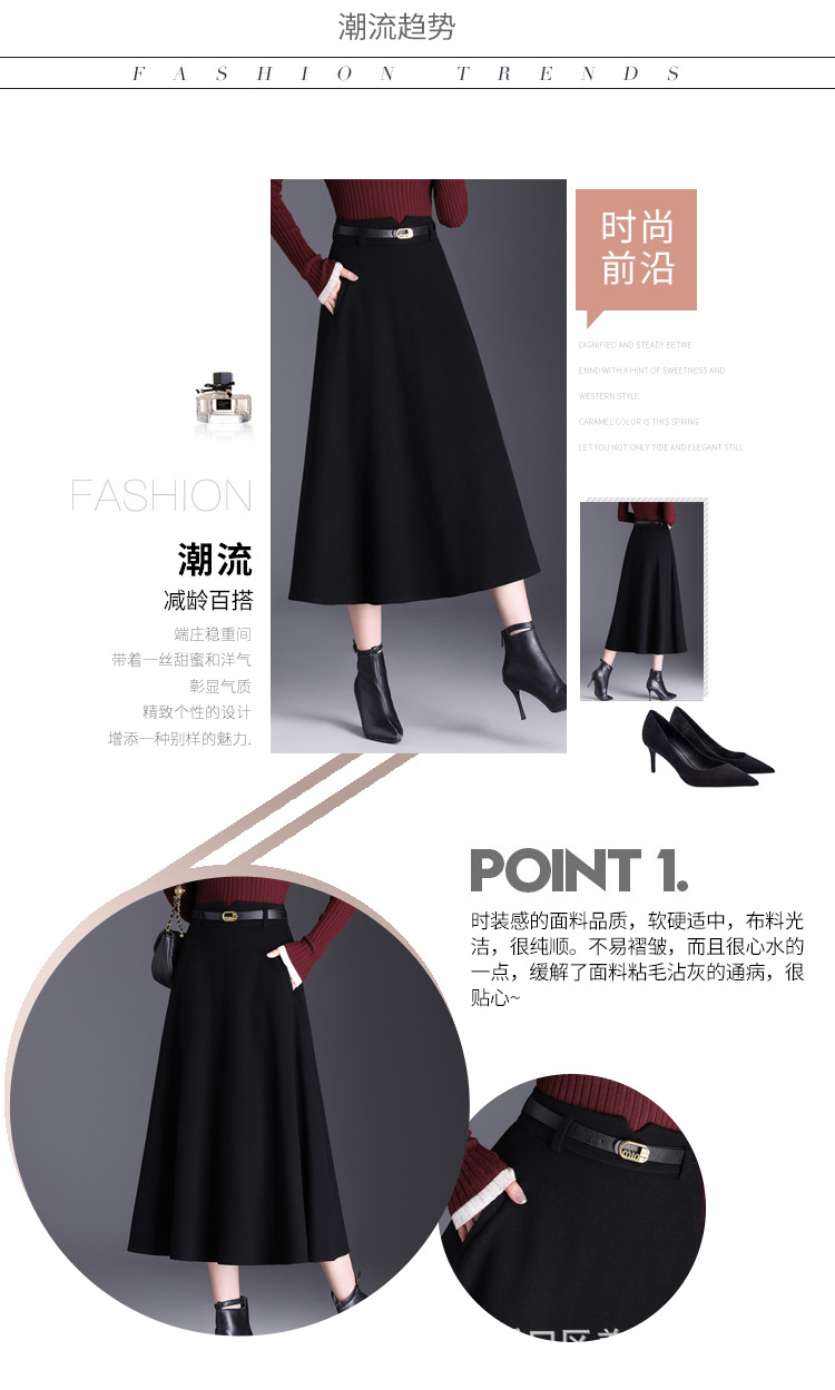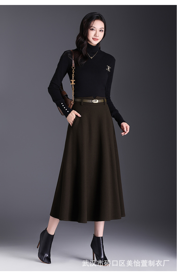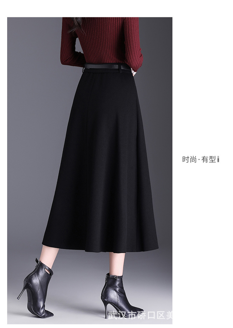 MYX-KYL-99865-L显瘦黑色时尚A字裙过膝毛呢大摆裙2024年冬款长款高腰洋气半身裙