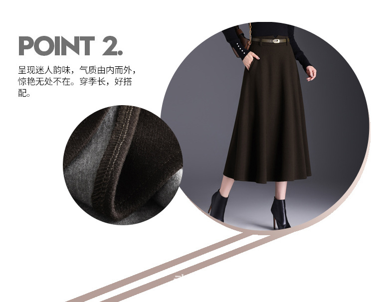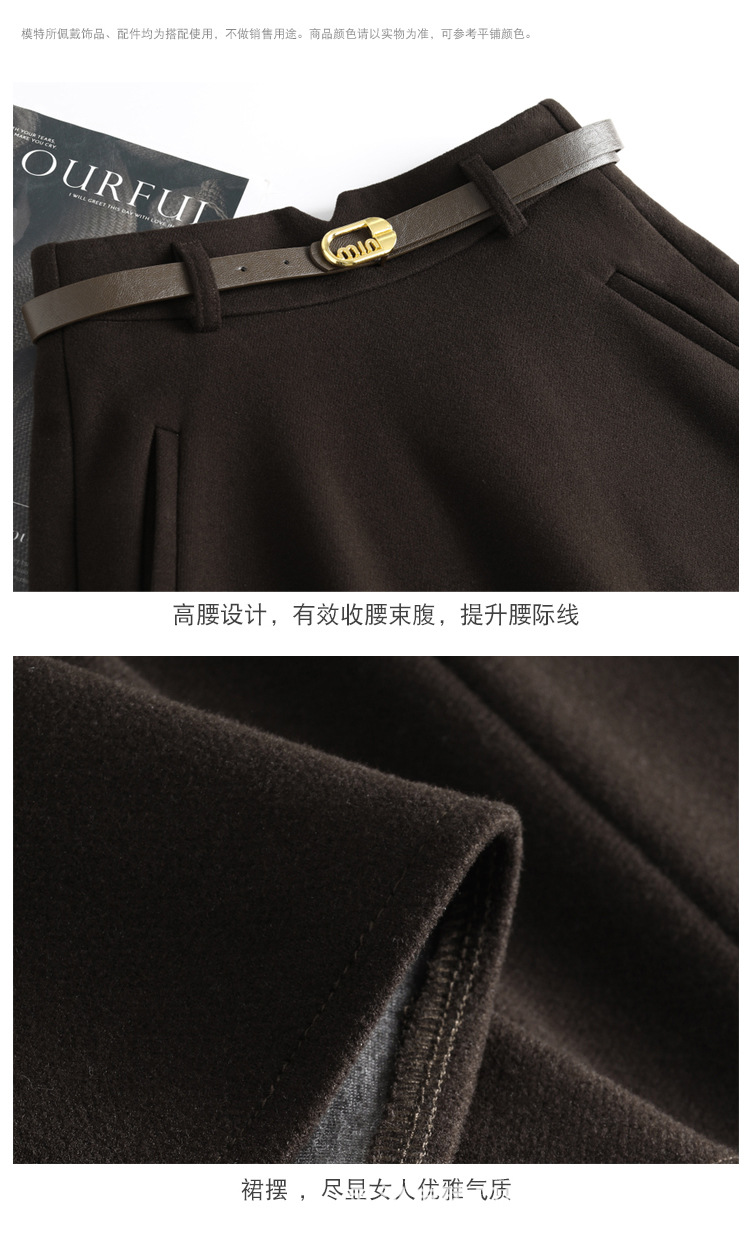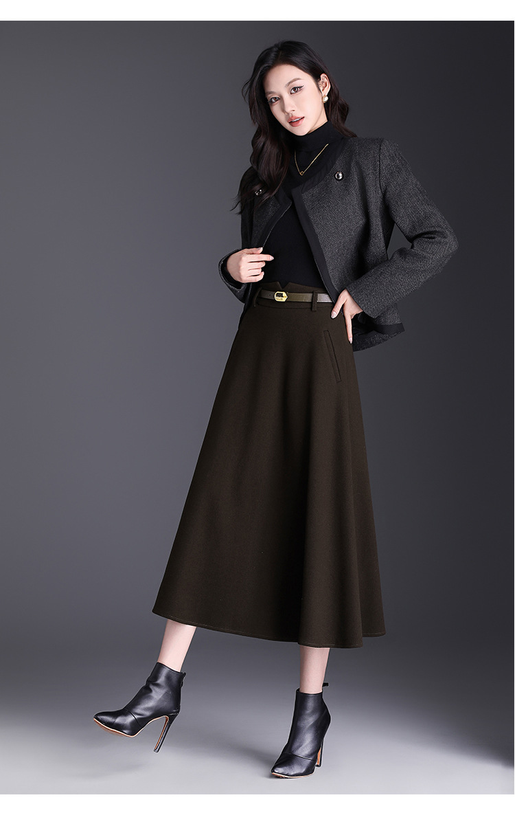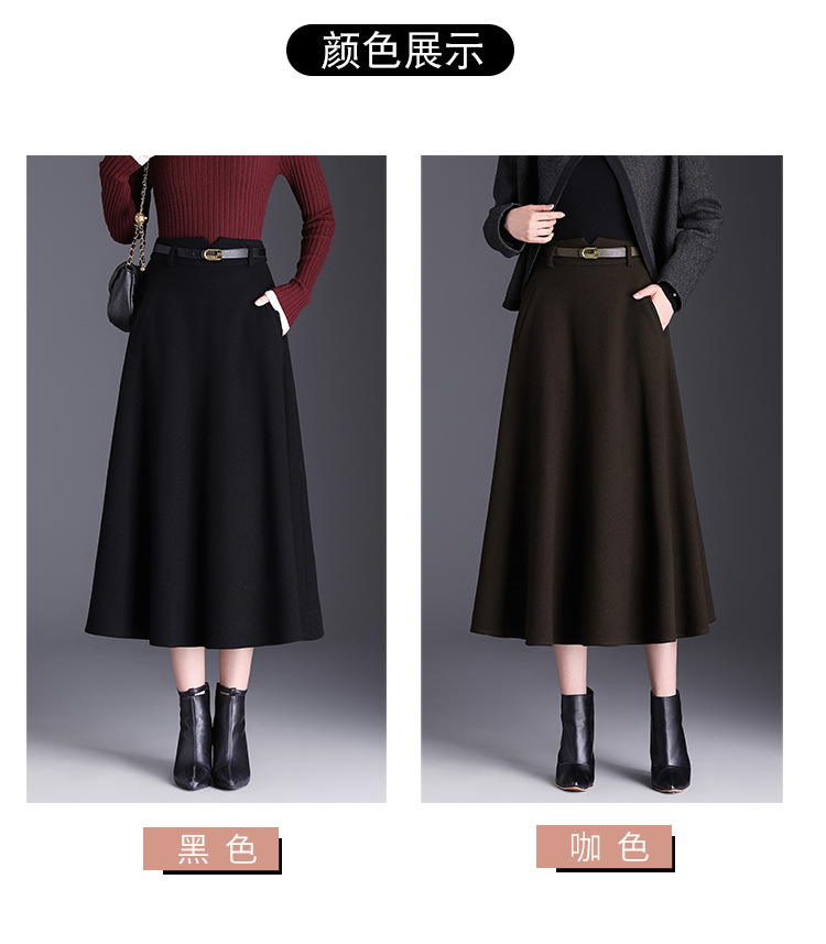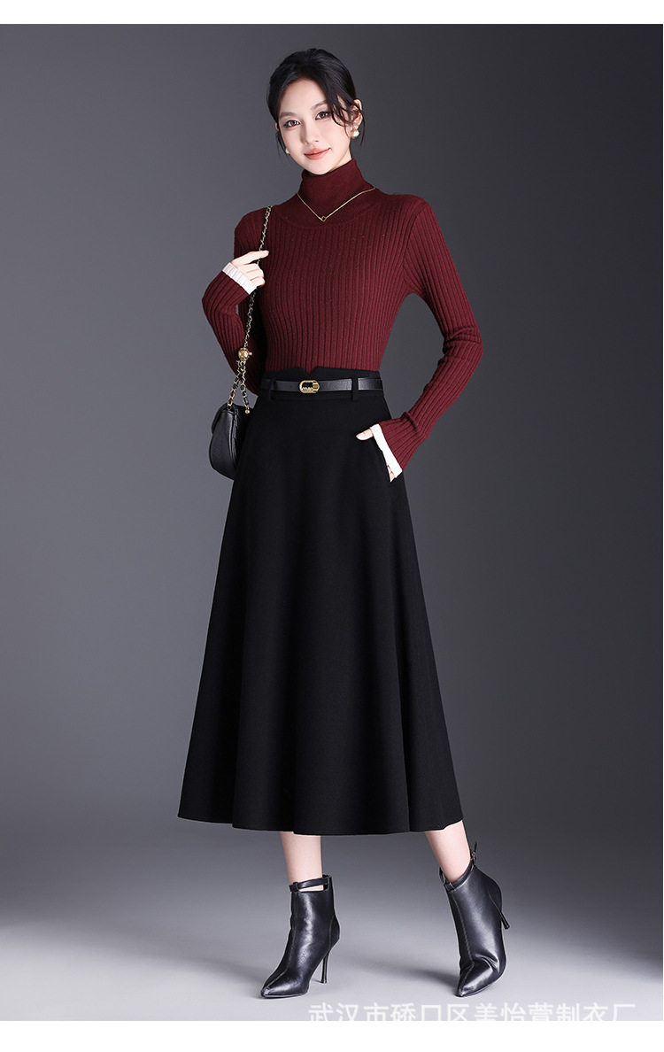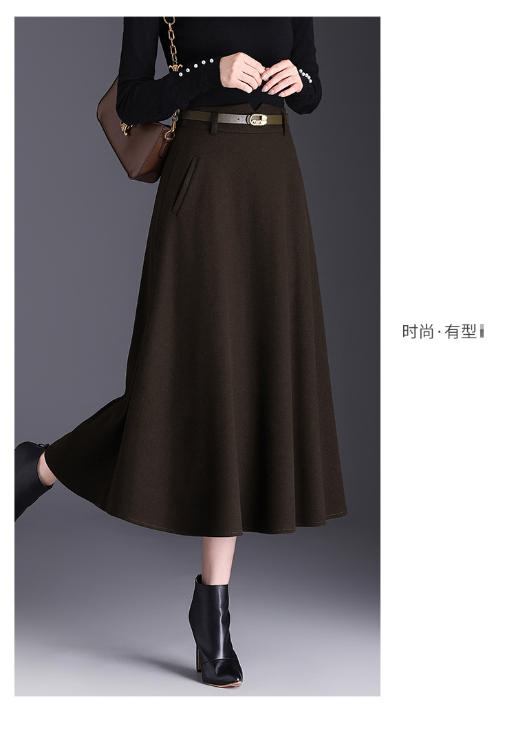 MYX-KYL-99865-L显瘦黑色时尚A字裙过膝毛呢大摆裙2024年冬款长款高腰洋气半身裙