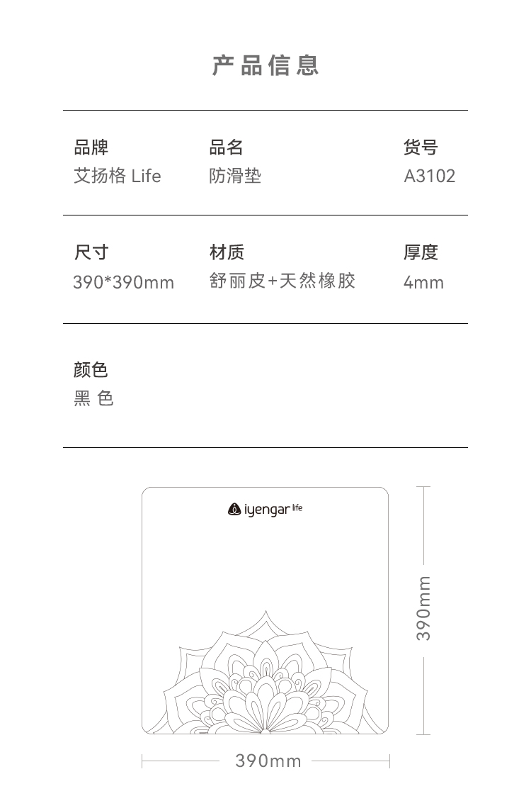 艾扬格 life A3102迷你小瑜伽垫 橡胶防滑垫 适配瑜伽椅防滑耐磨 小巧灵活易携多用