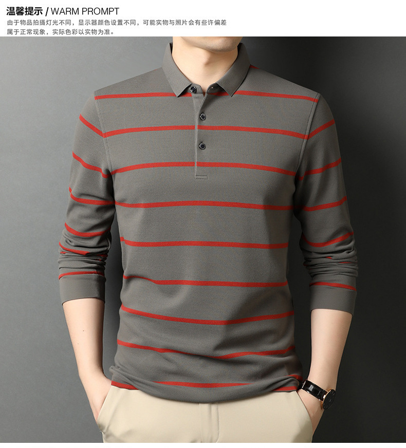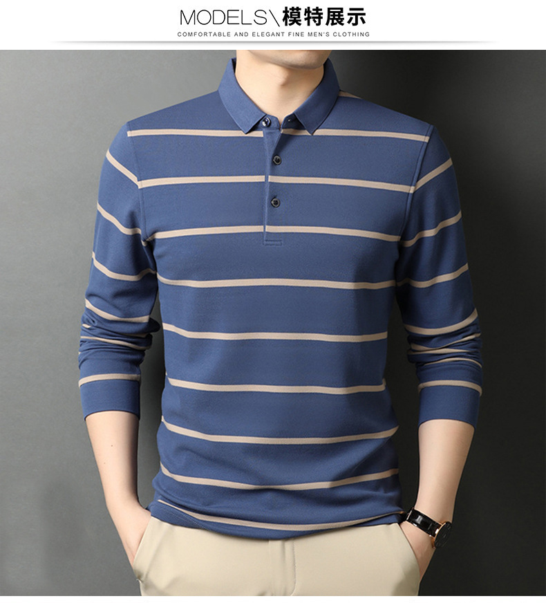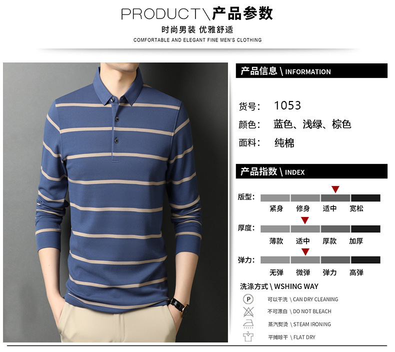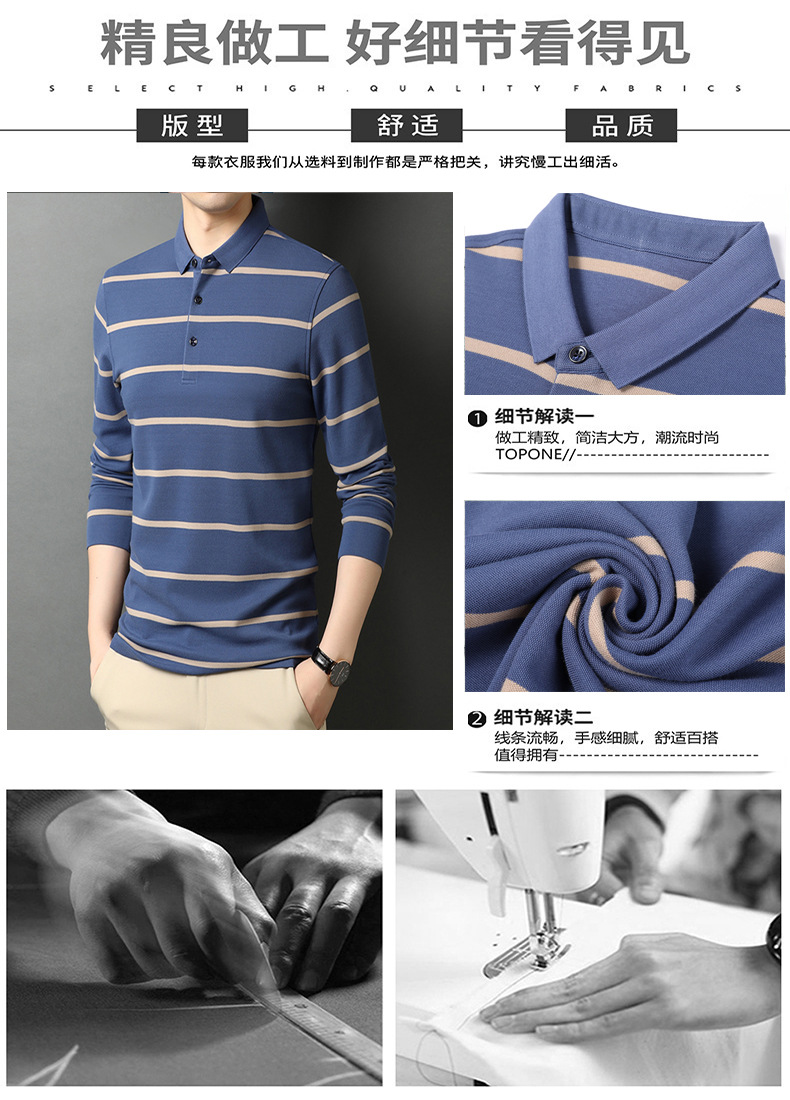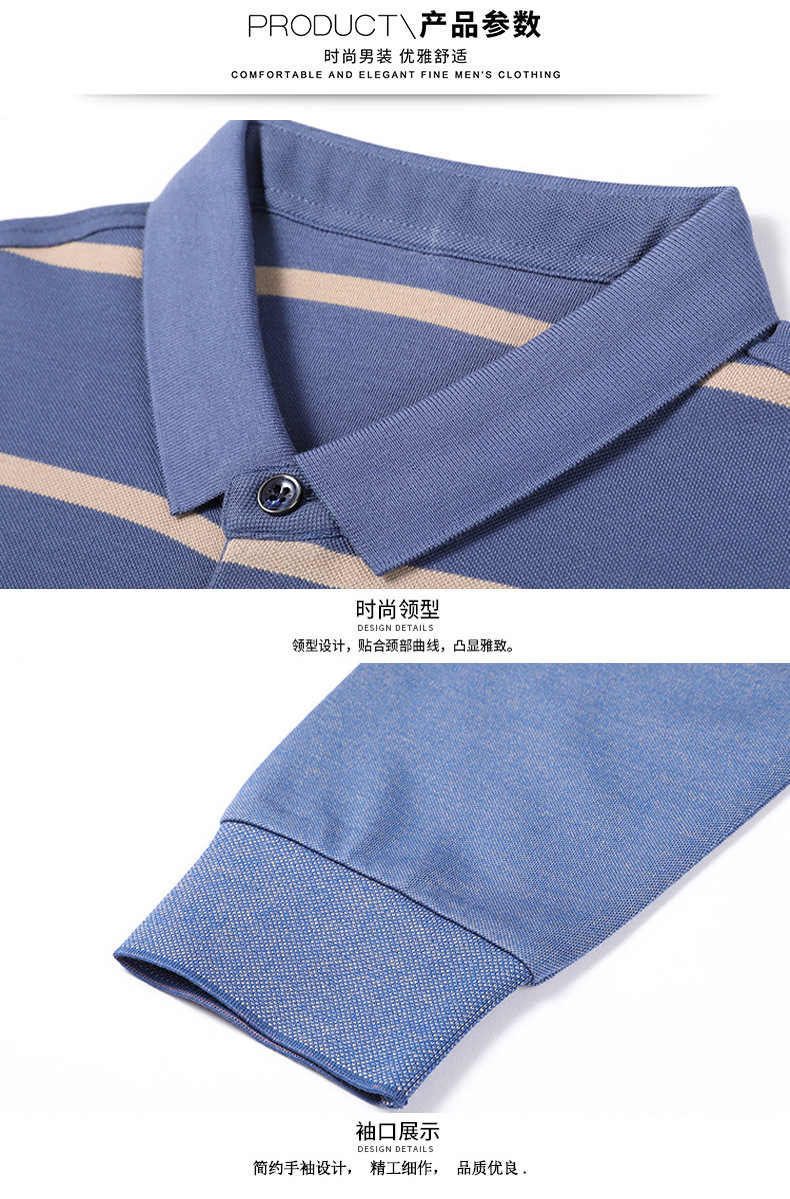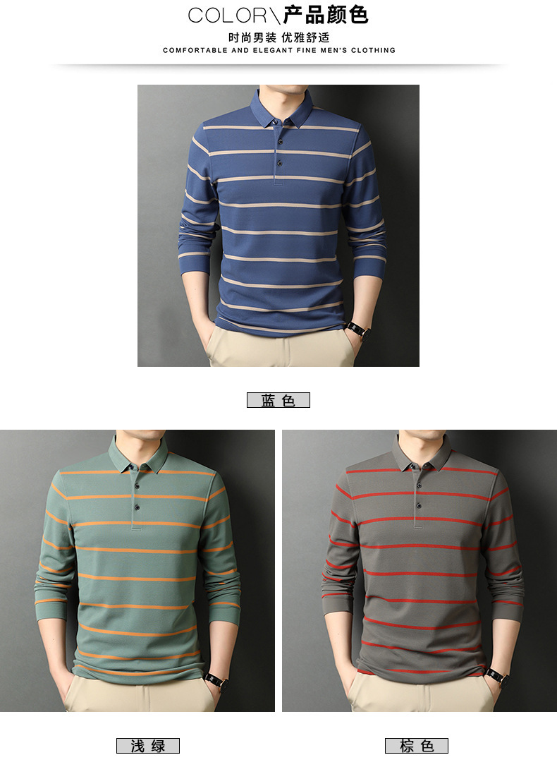 红览 条纹纯棉长袖T恤男士翻领POLO衫1053
