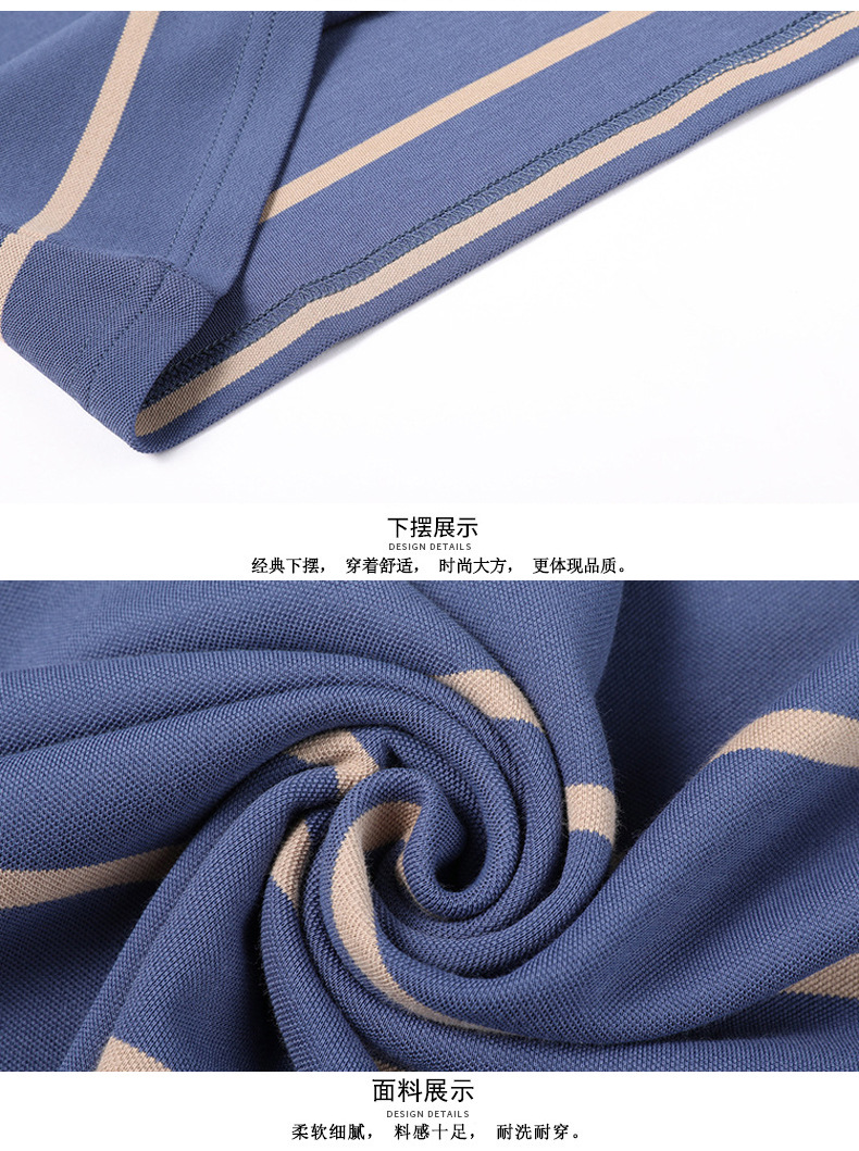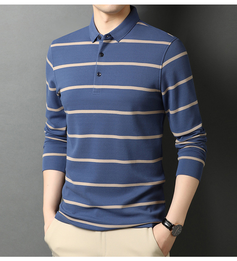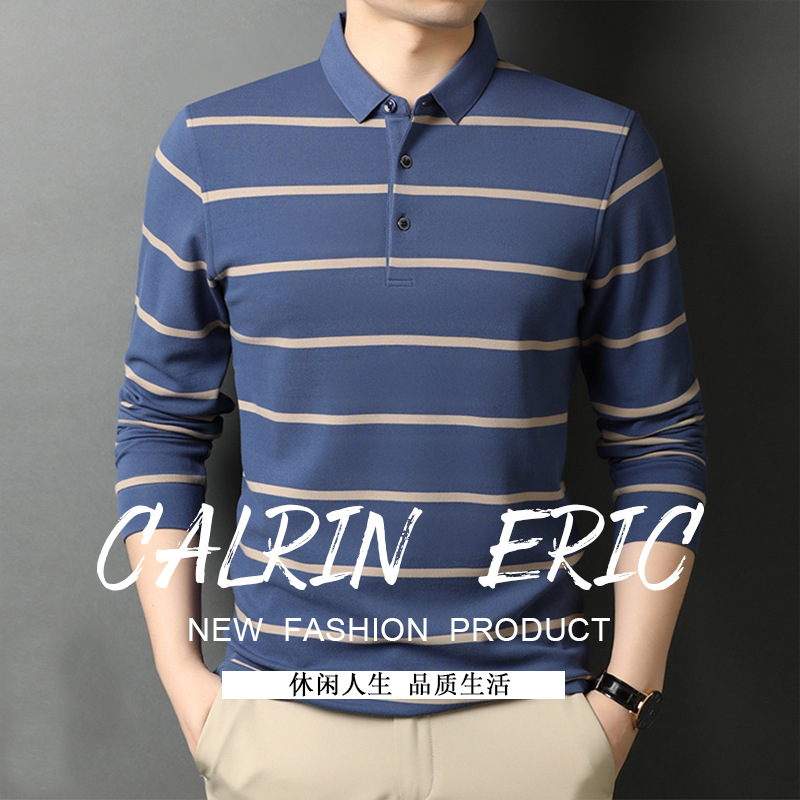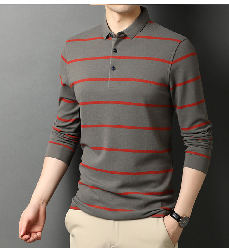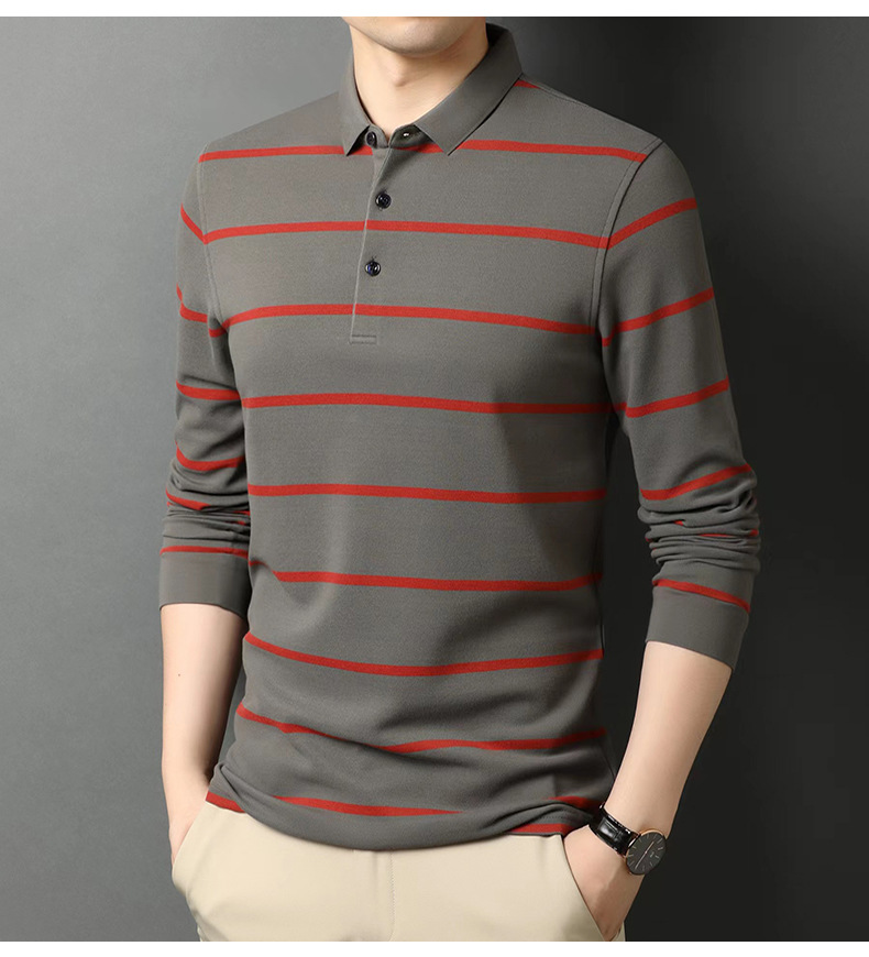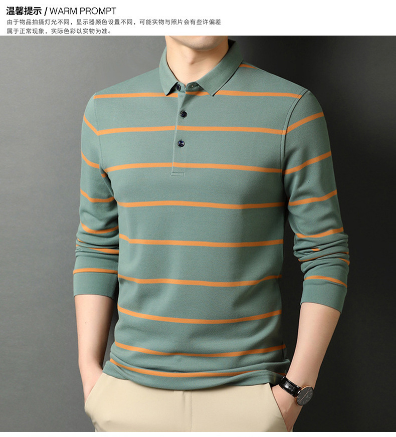 红览 条纹纯棉长袖T恤男士翻领POLO衫1053