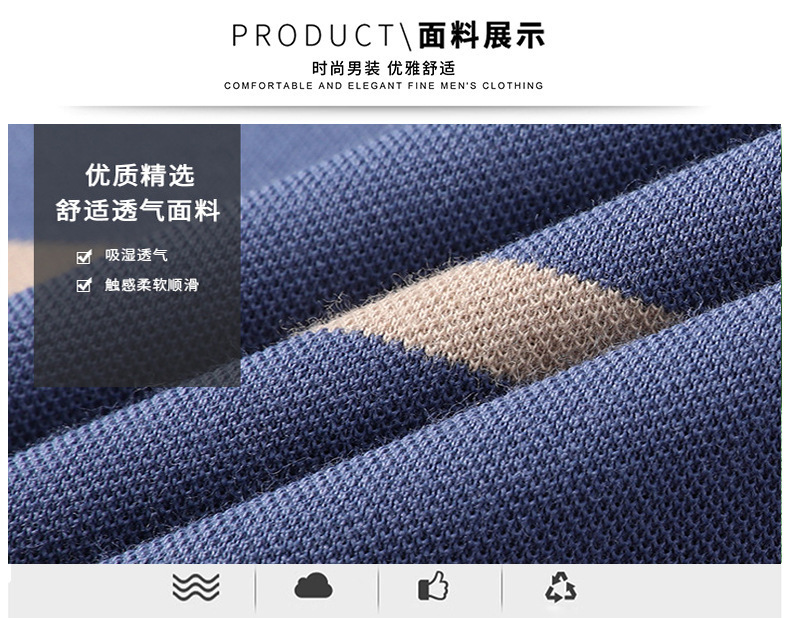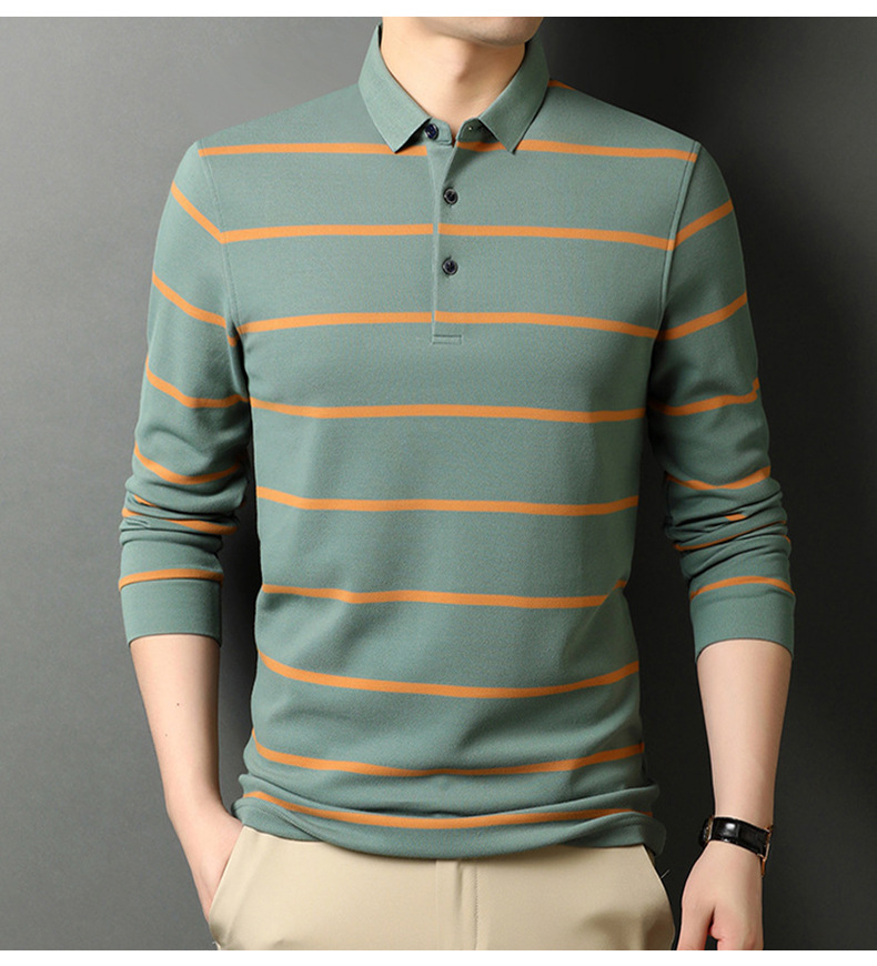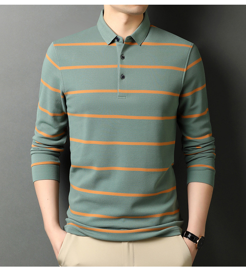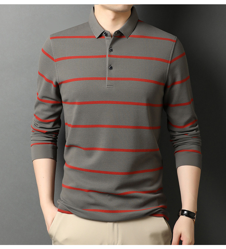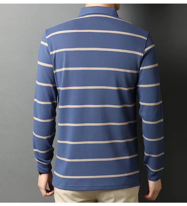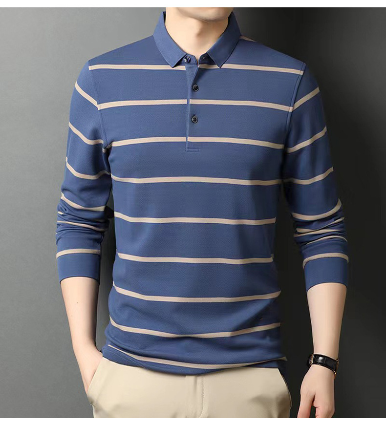 红览 条纹纯棉长袖T恤男士翻领POLO衫1053