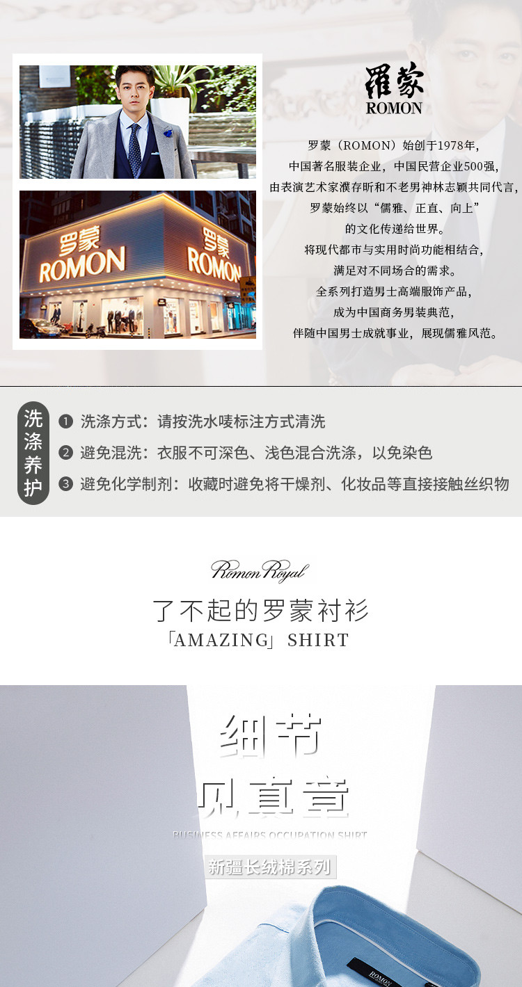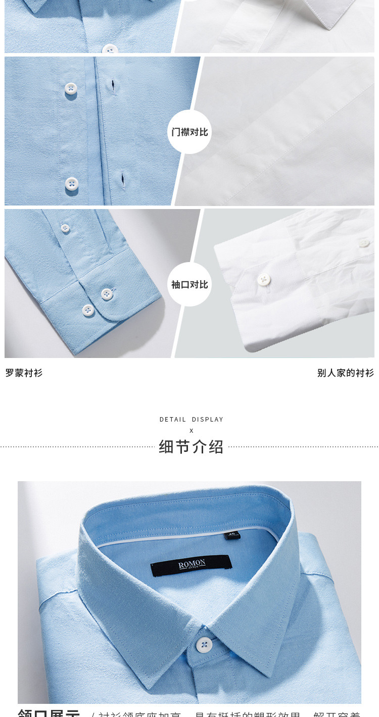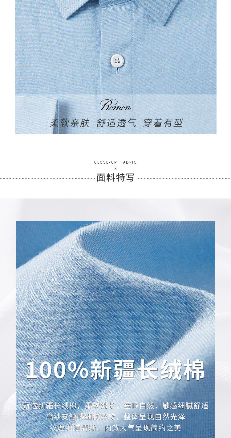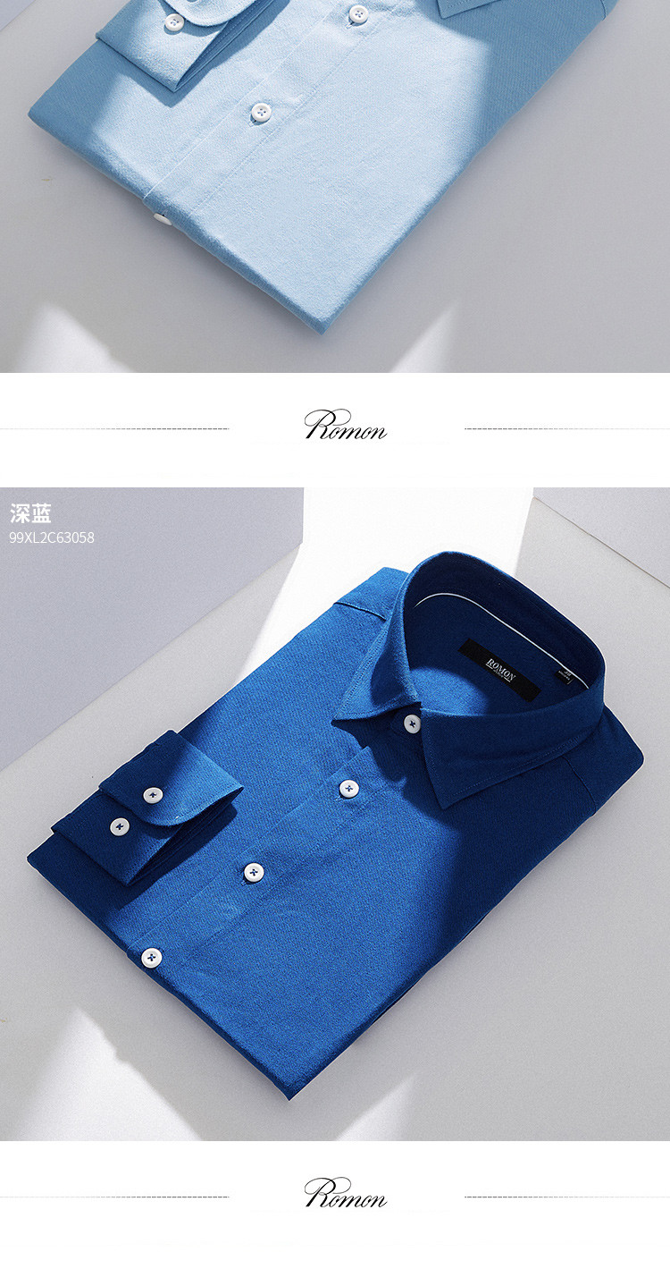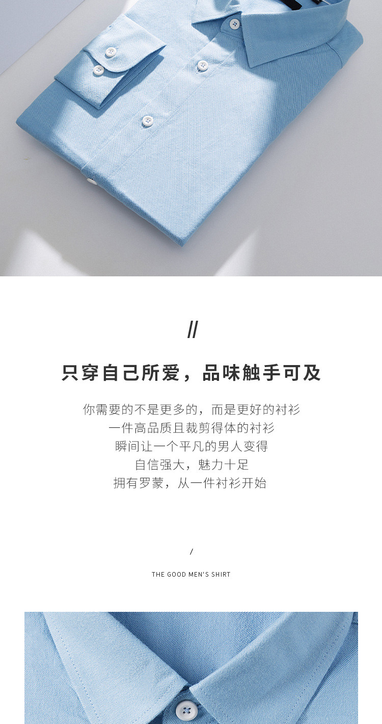 【100棉】罗蒙春秋长袖磨毛衬衫男士正装商务通勤休闲百搭纯色衬衣