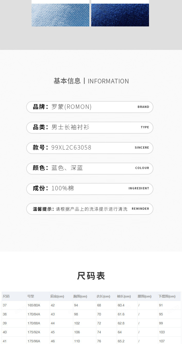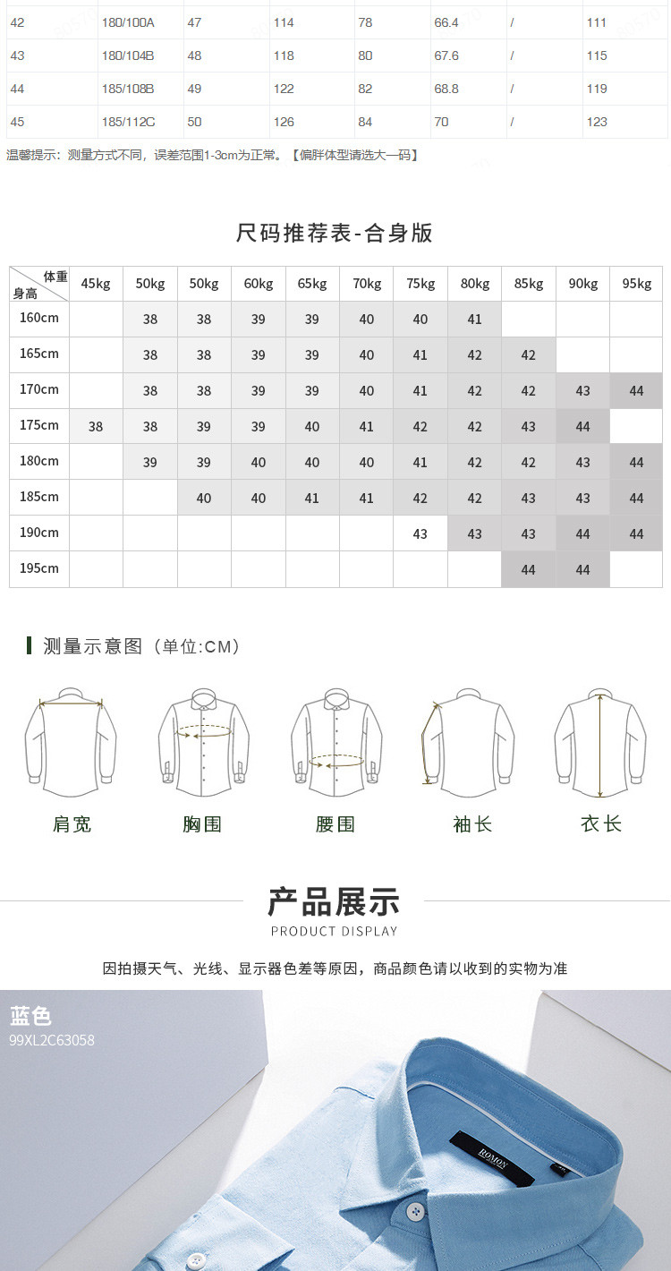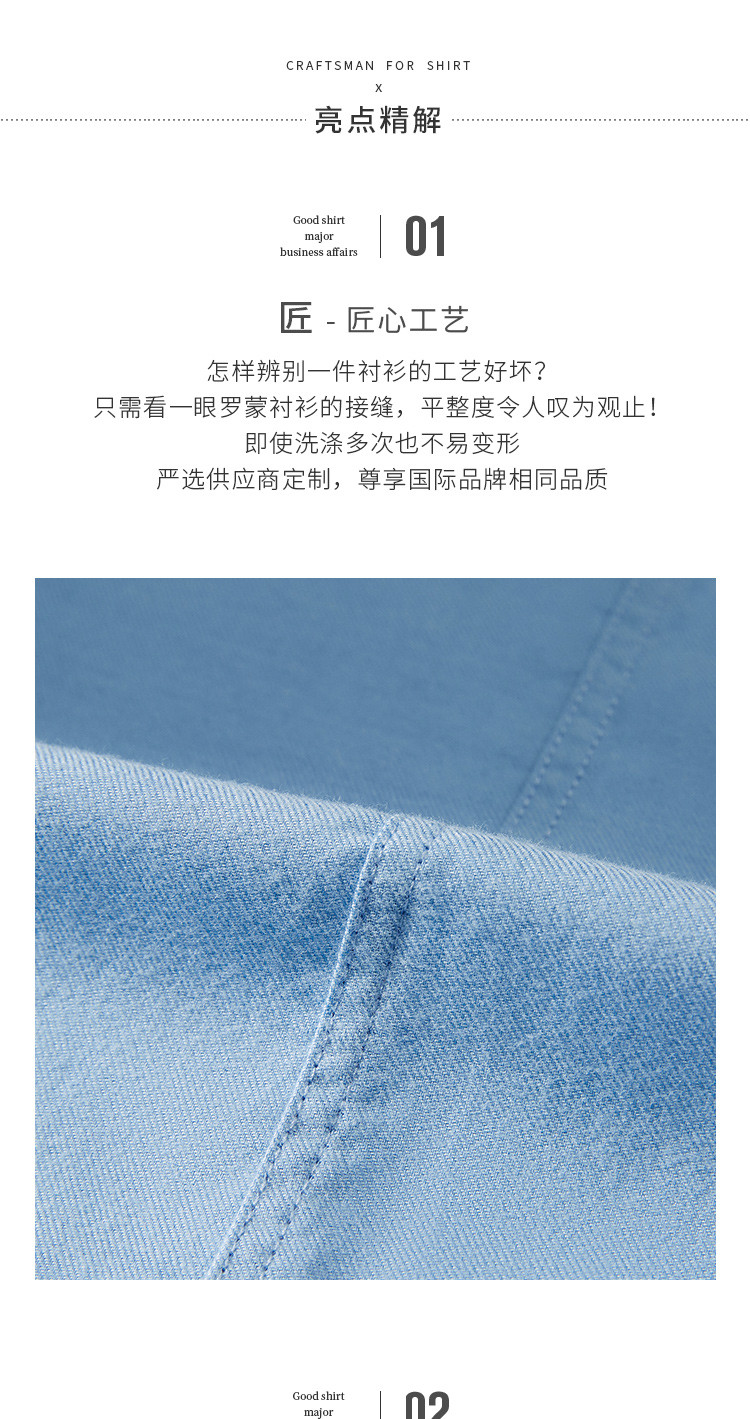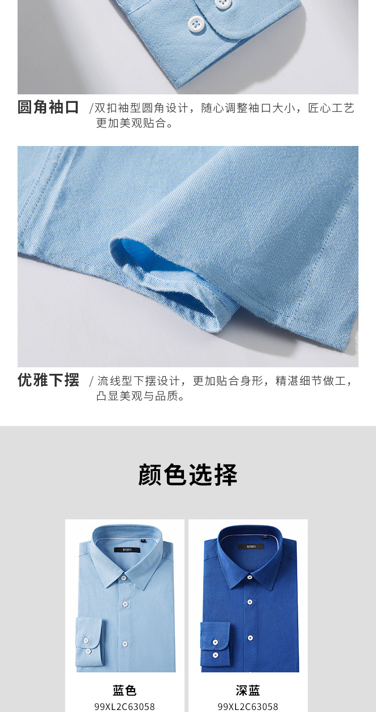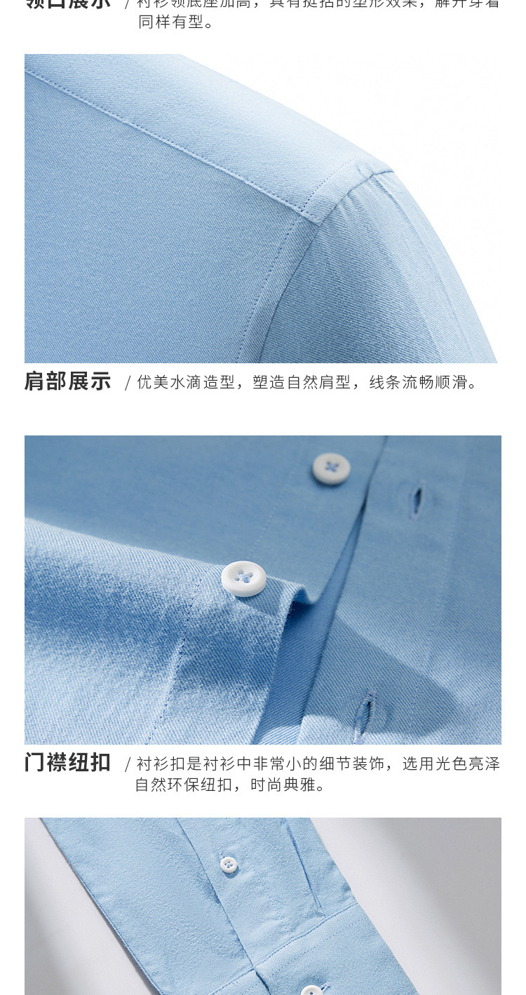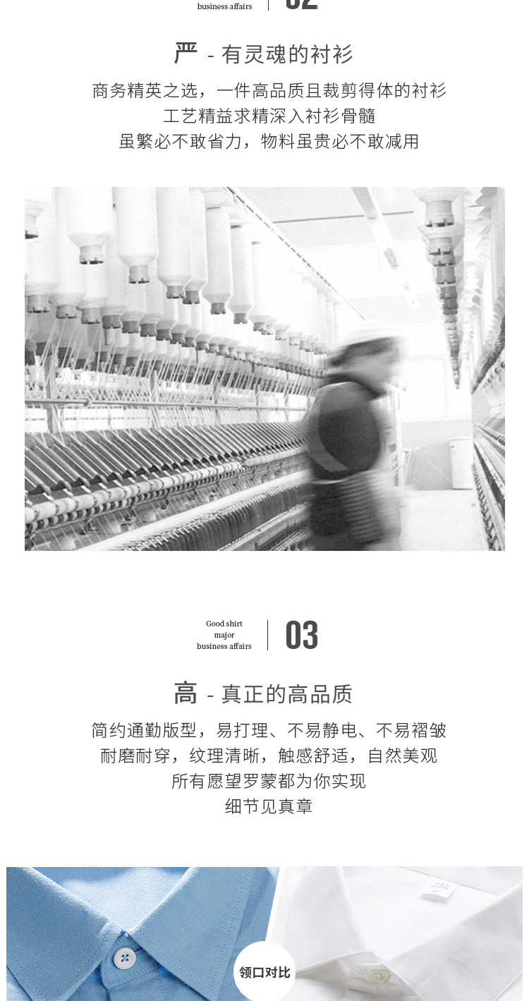 【100棉】罗蒙春秋长袖磨毛衬衫男士正装商务通勤休闲百搭纯色衬衣