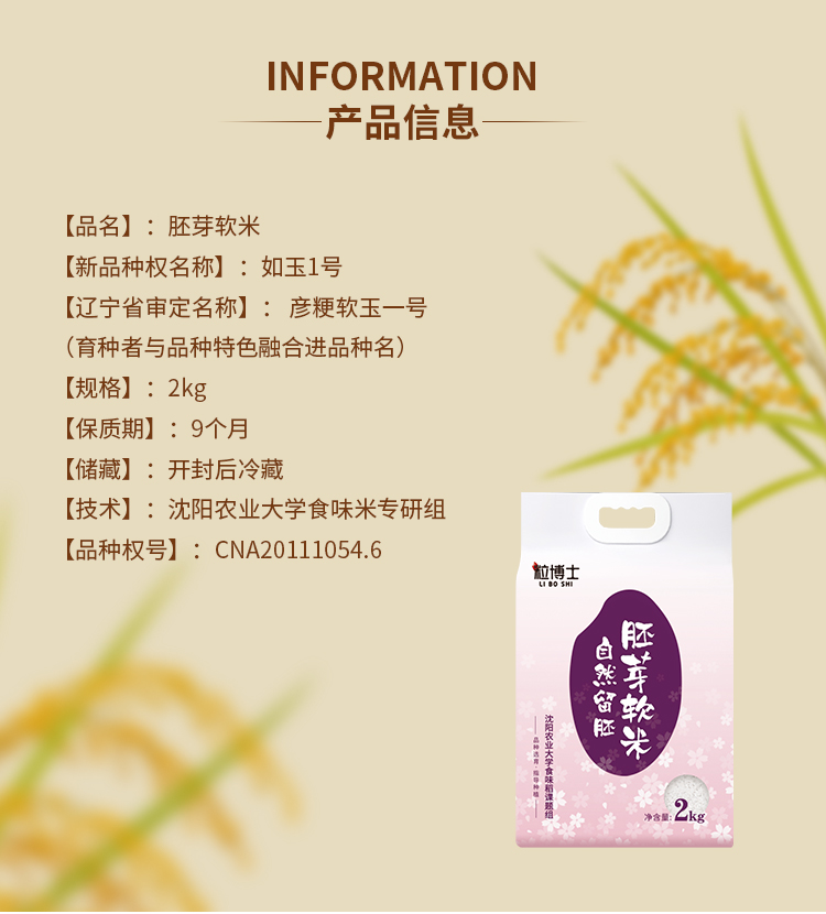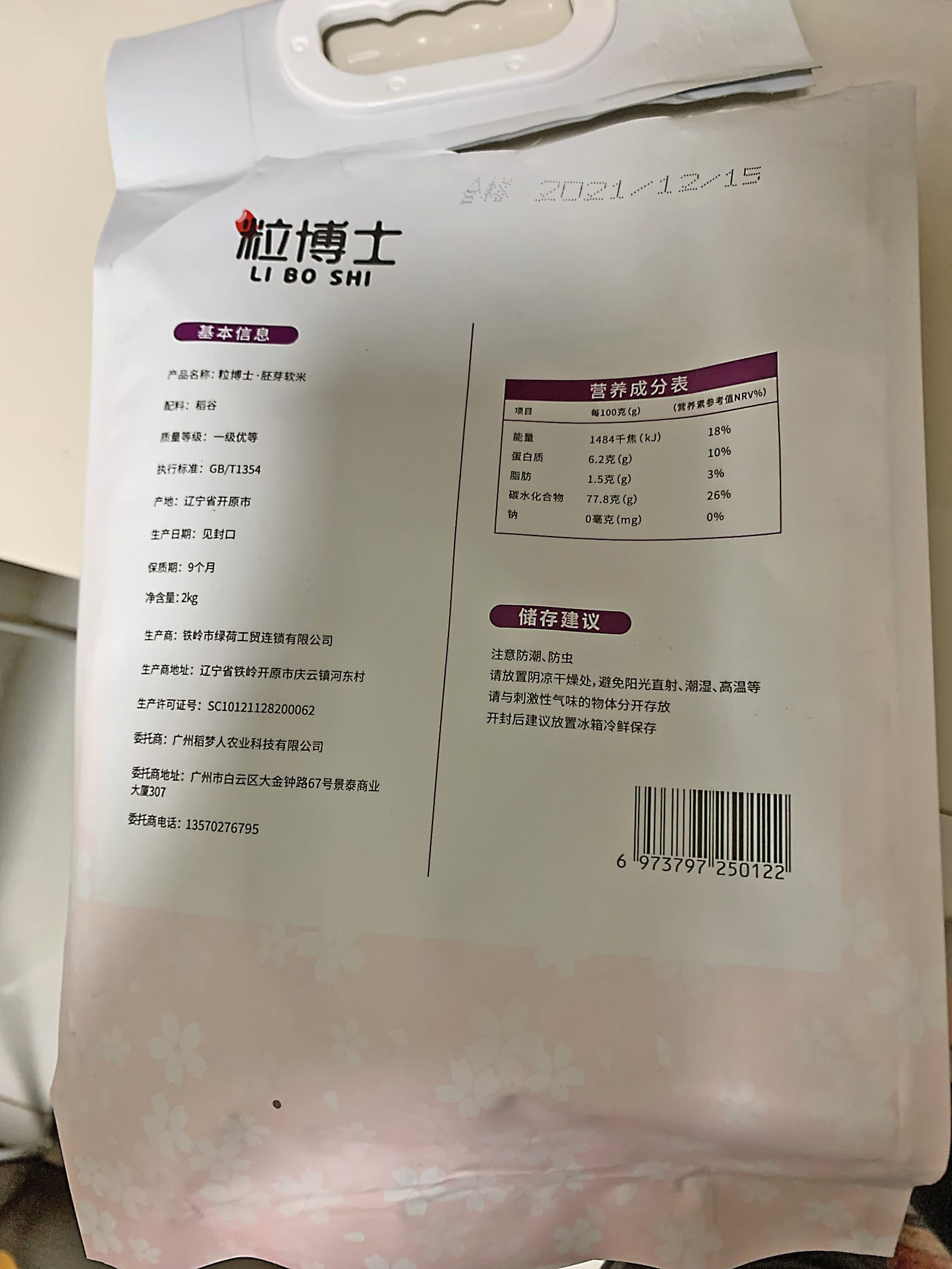 经检测,营养性高、安全无农残、软糯不回生:粒博士胚芽软米 宝宝辅食 2kg/袋 5kg/袋【需冷藏保存】