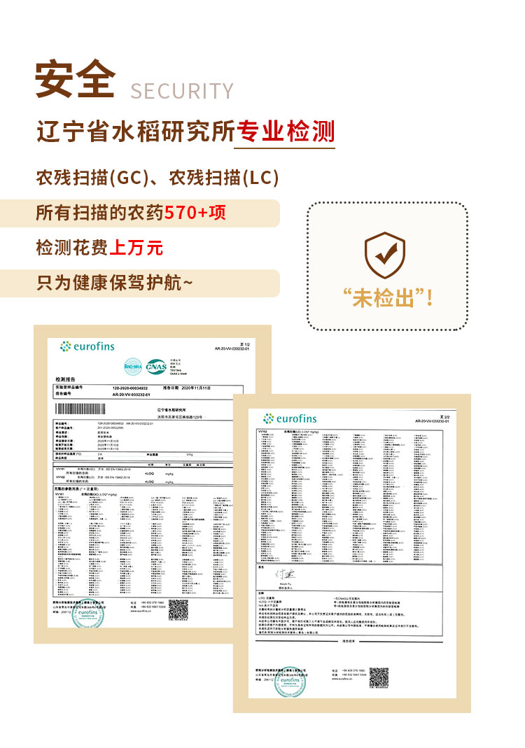 农残、重金属和黄曲霉毒素含量均符合国标,安全性优秀;