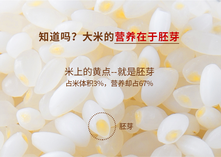 看看胚芽软晶米为什么会这么有营养以及好吃,先看看三个实拍图,大米上的胚芽特别明显,这里就是大米有营养的部分。