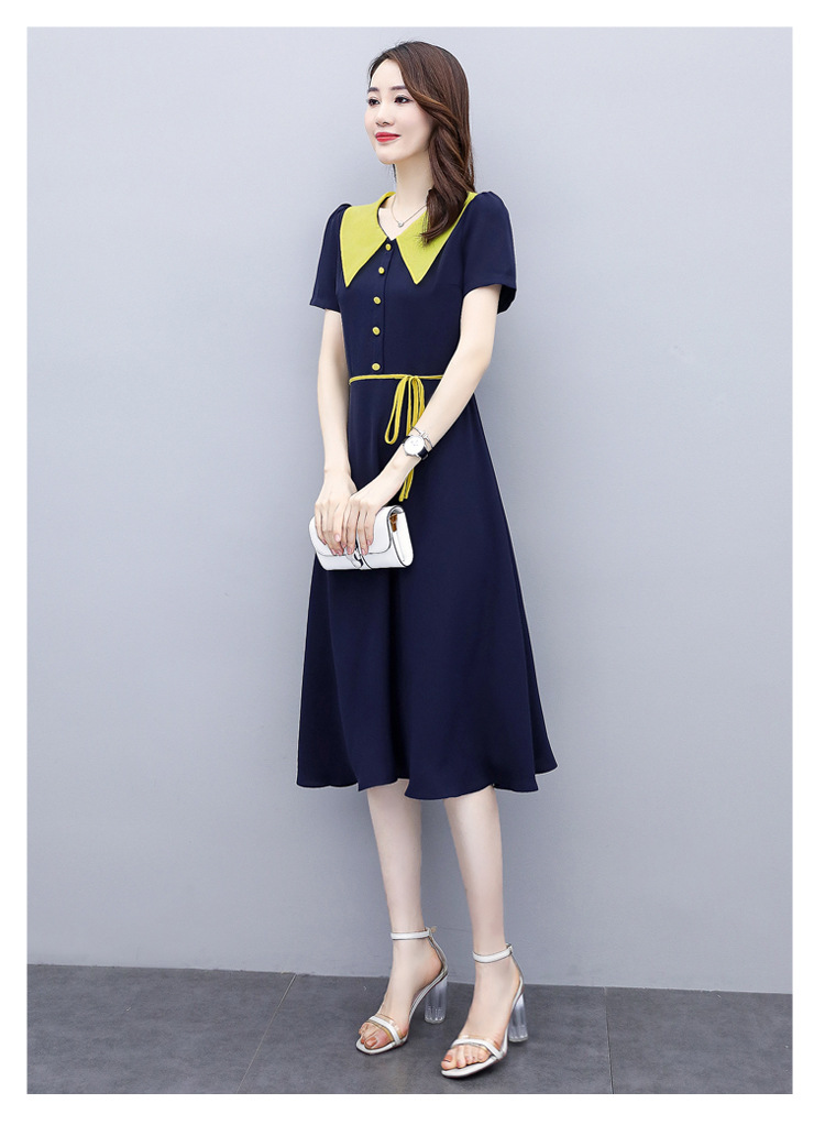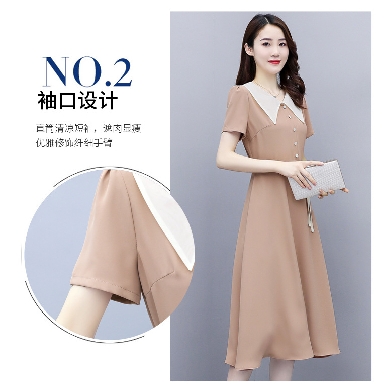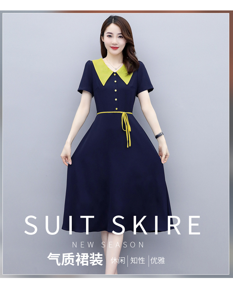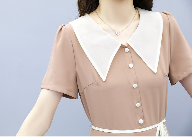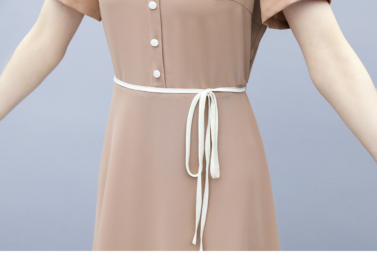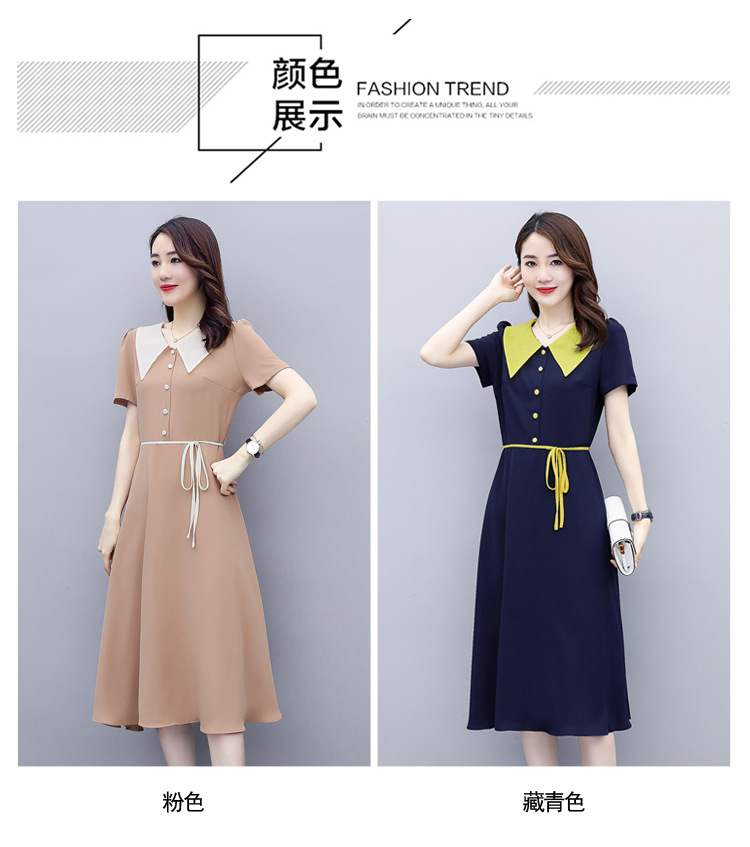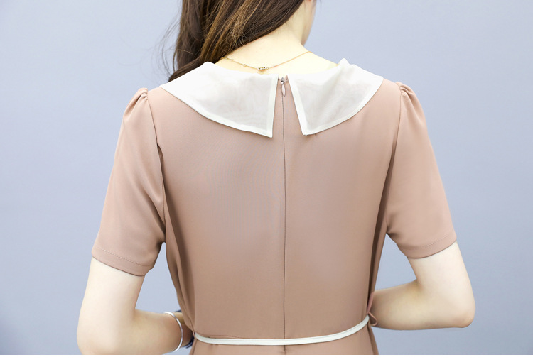 WZNH-WX80399新款OL气质女装雪纺短袖翻领A字连衣裙