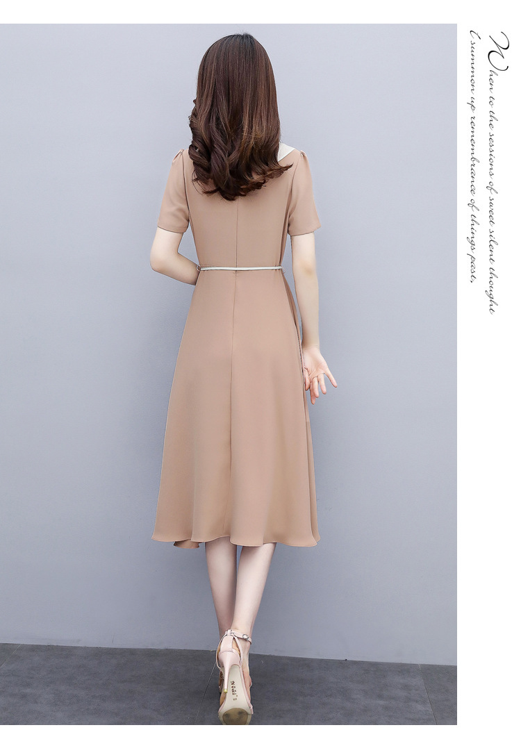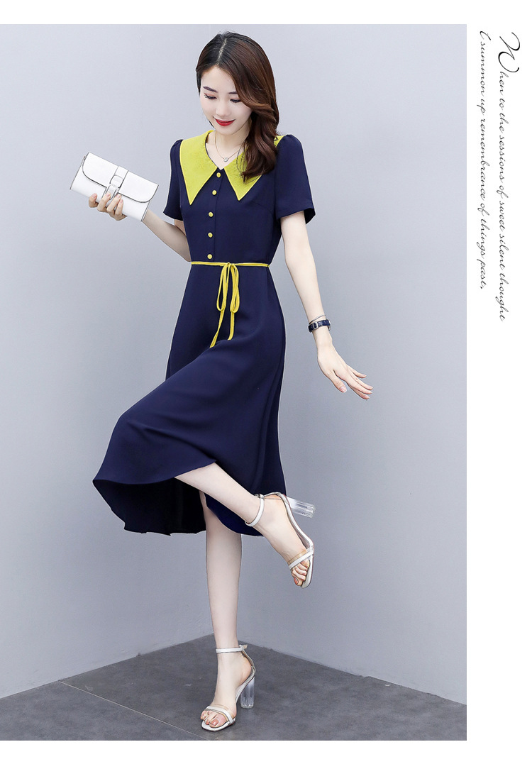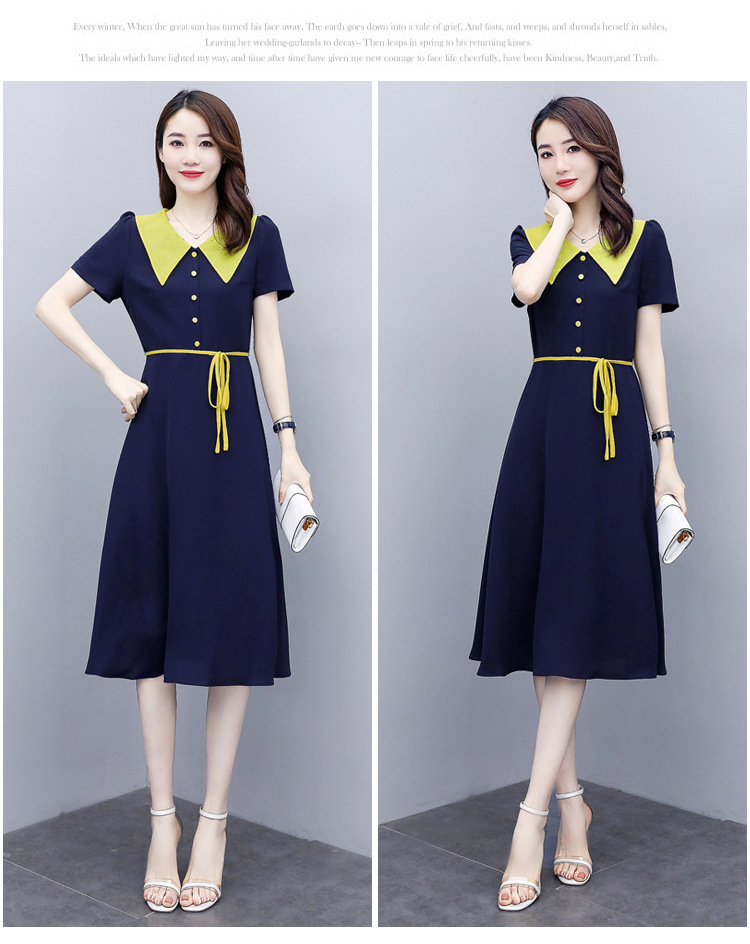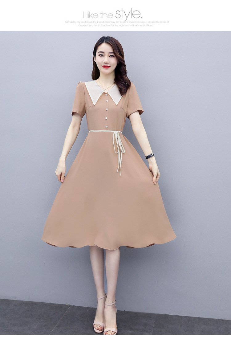 WZNH-WX80399新款OL气质女装雪纺短袖翻领A字连衣裙