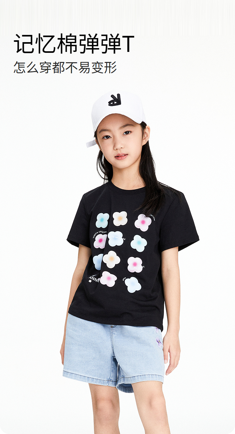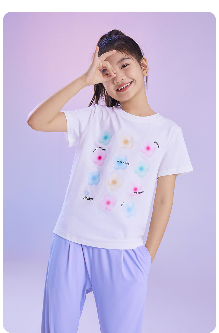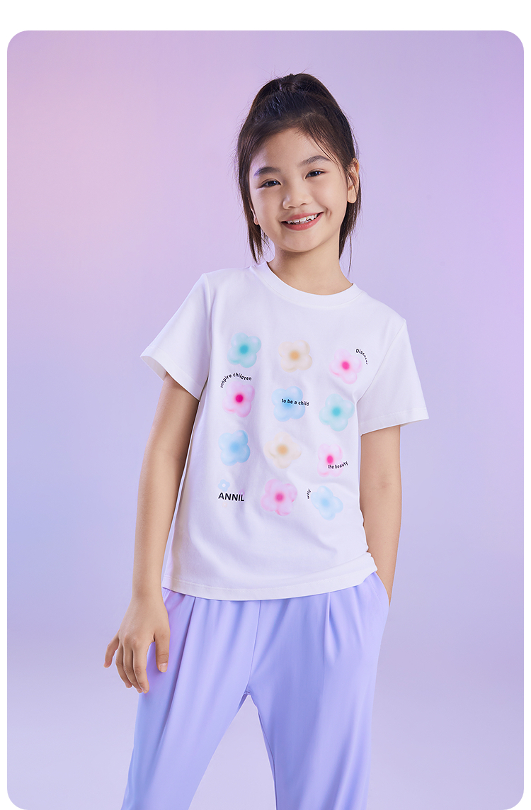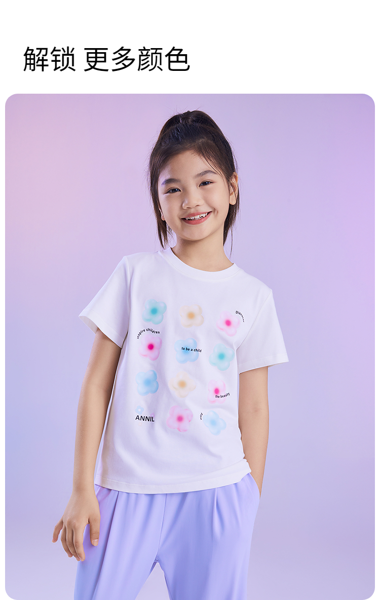 女童SORONA圆领短袖针织衫夏季新款安奈儿童装EG521192