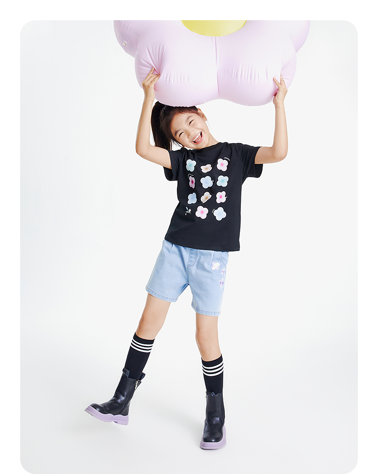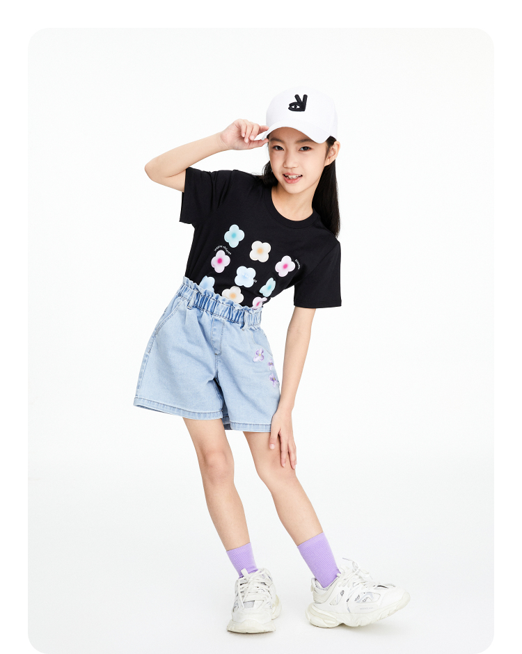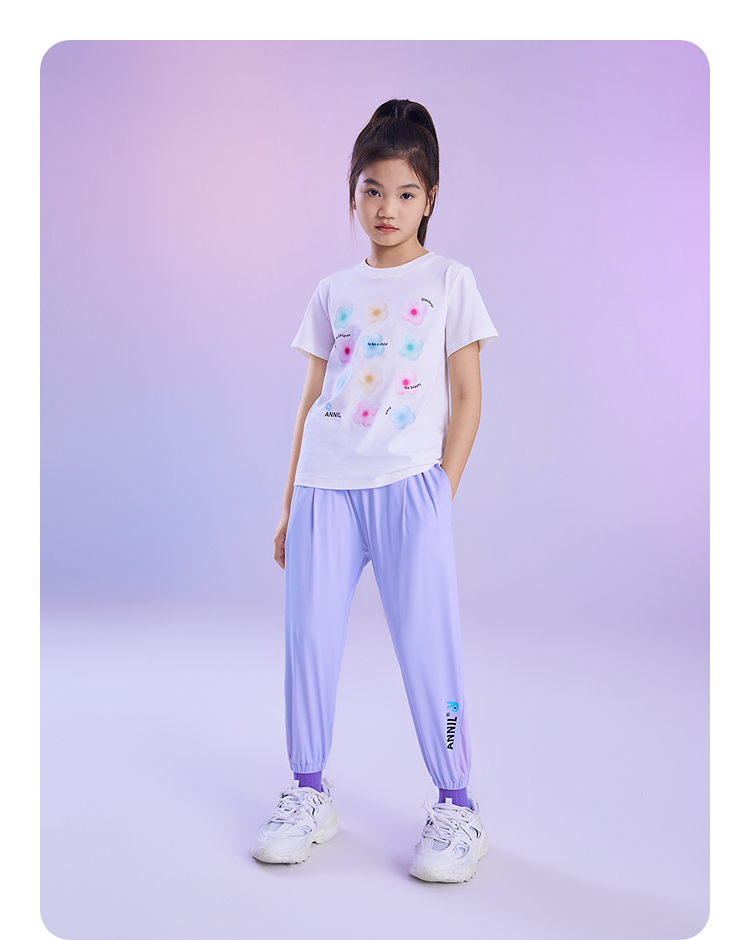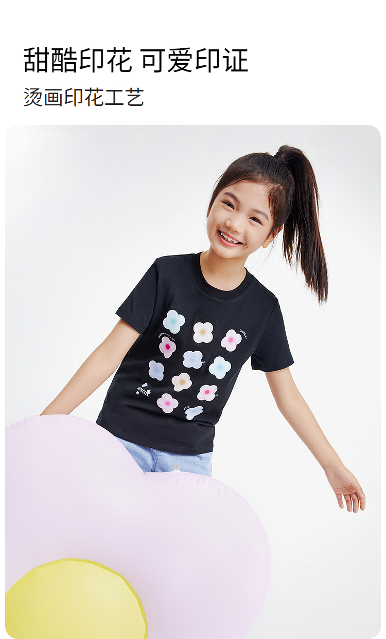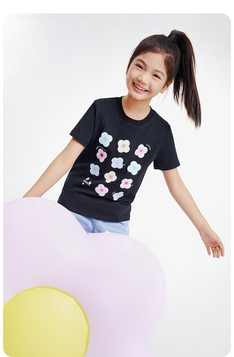 女童SORONA圆领短袖针织衫夏季新款安奈儿童装EG521192