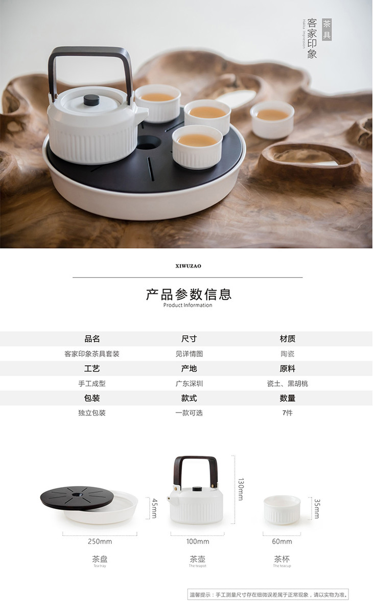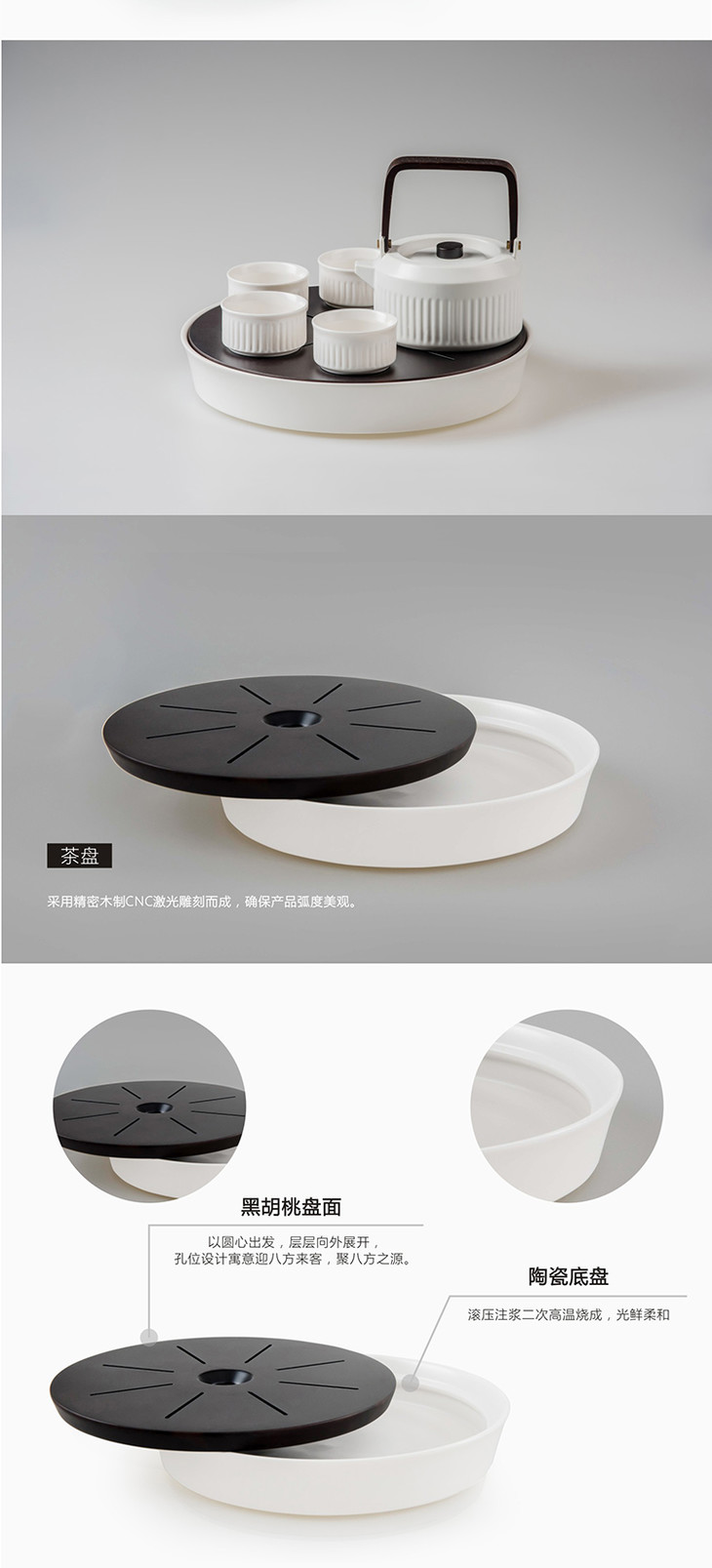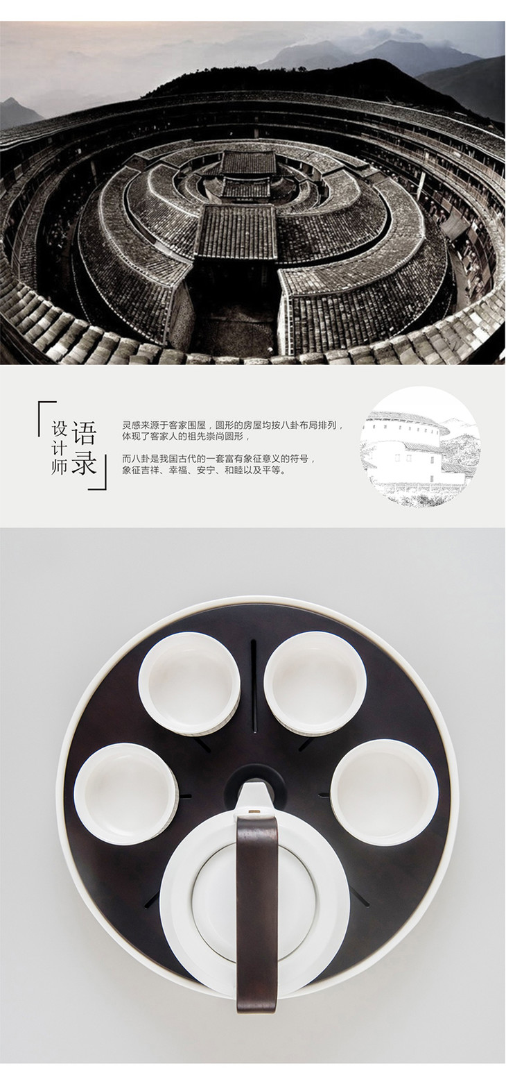 诗意生活 |「客家印象」功夫茶具套装 陶瓷花茶壶 黑胡桃茶盘