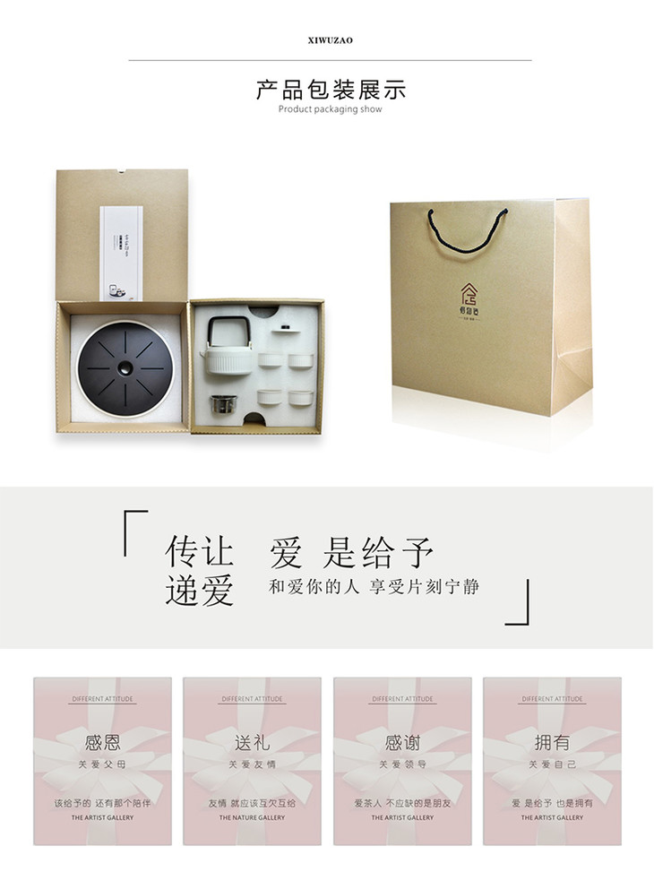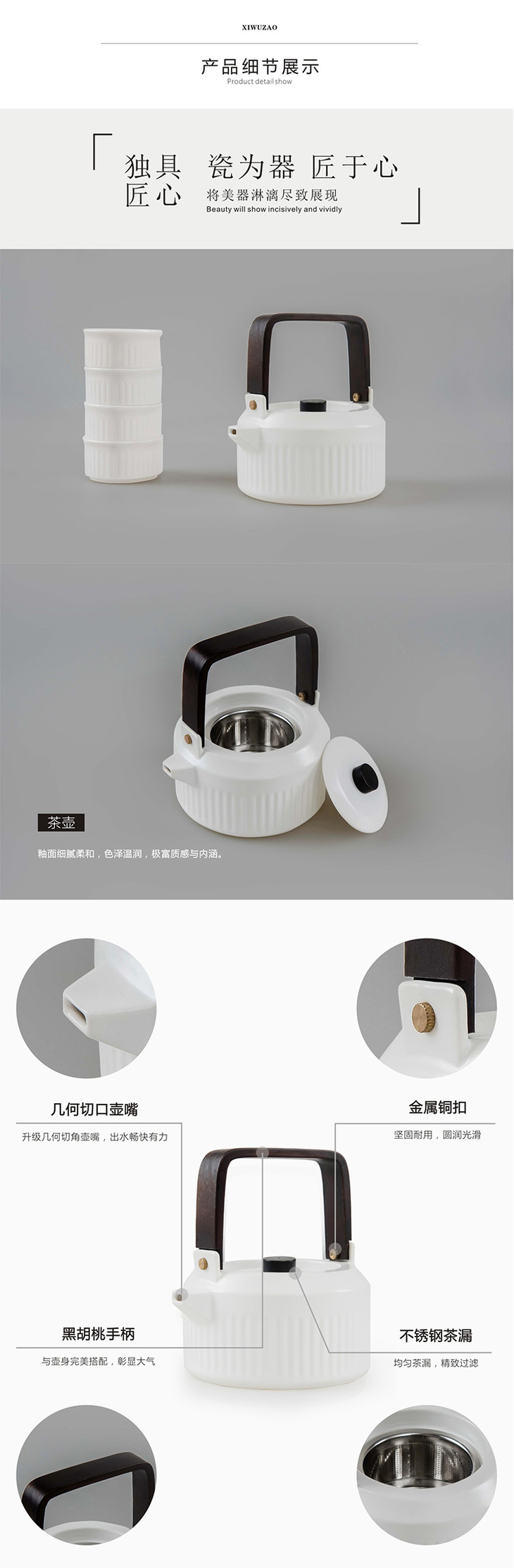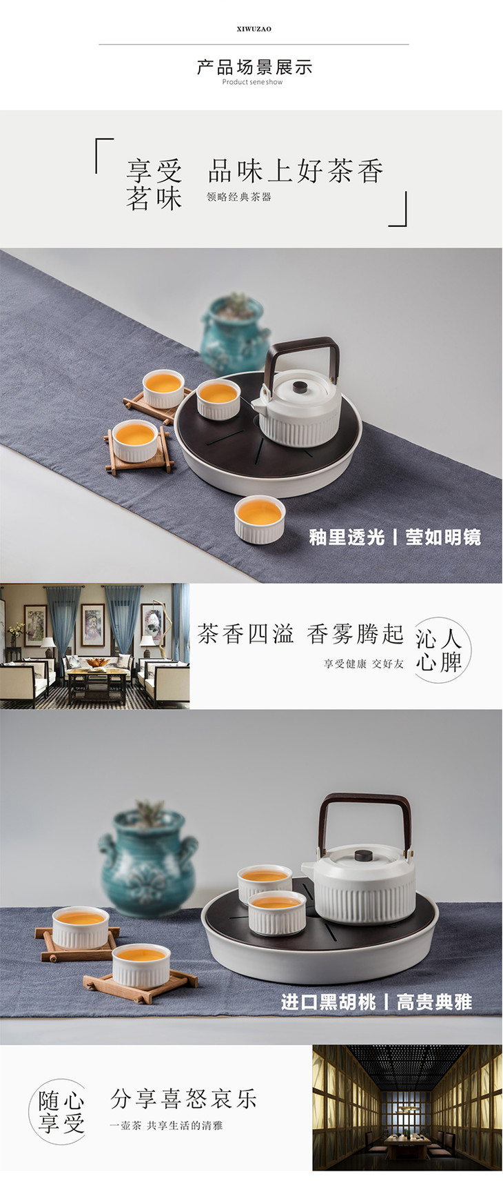 诗意生活 |「客家印象」功夫茶具套装 陶瓷花茶壶 黑胡桃茶盘